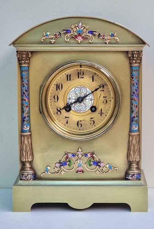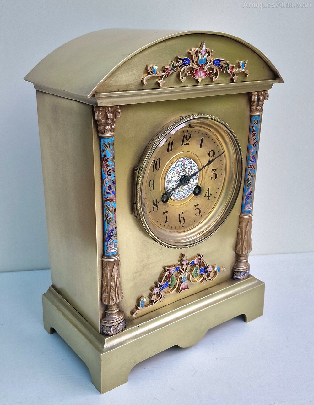 A Brass and Champleve Mantel Clock