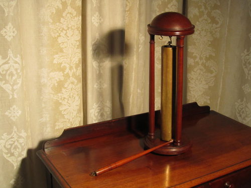 The gong has a heavy brass tubular gong, it is set in a solid Mahogany stand and has its original striker , the gong and stand are in excellent condition and would sit well on a hall table