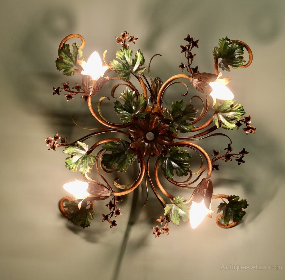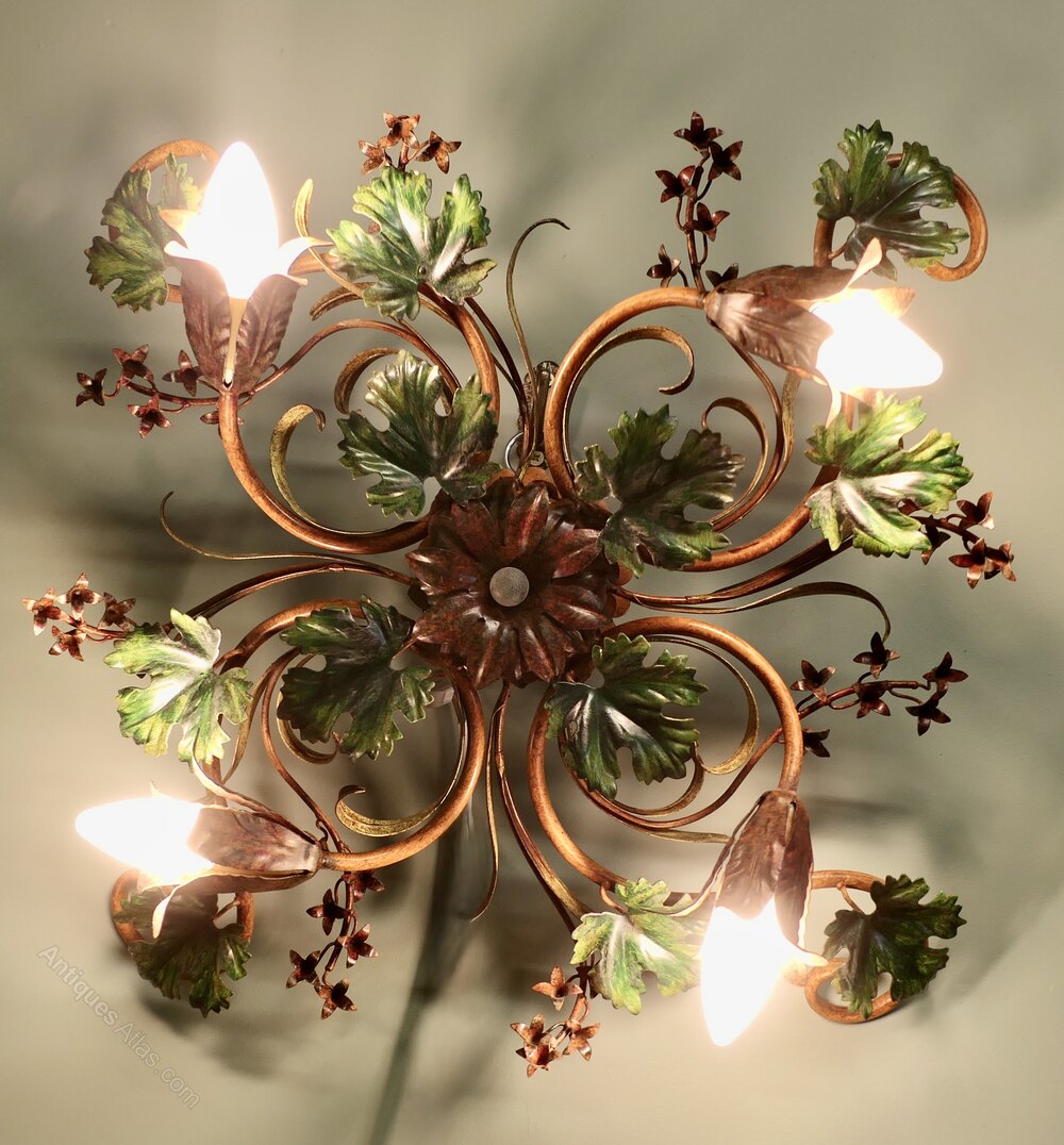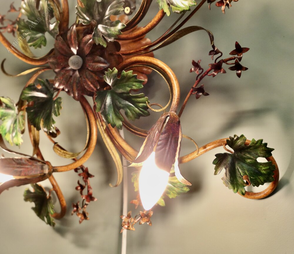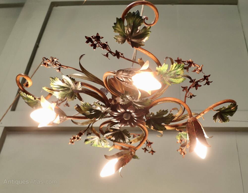 A French Toleware Bistro Ceiling Light, Decorated with Vines