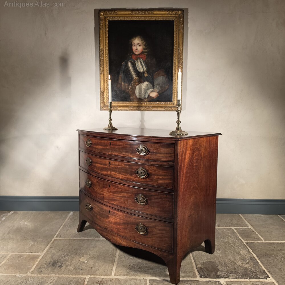 A Georgian bow front chest of drawers.