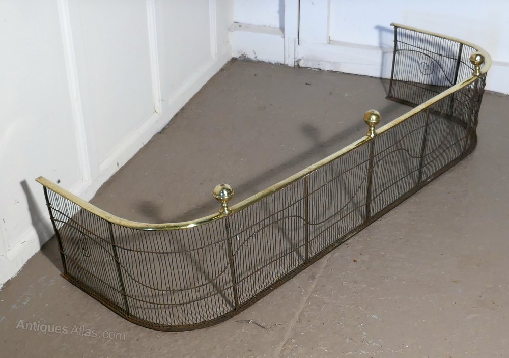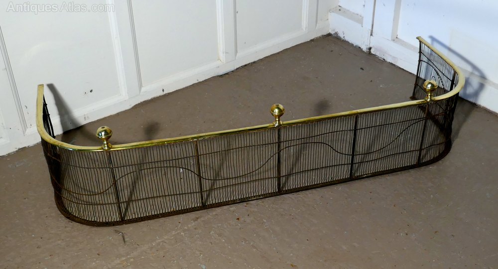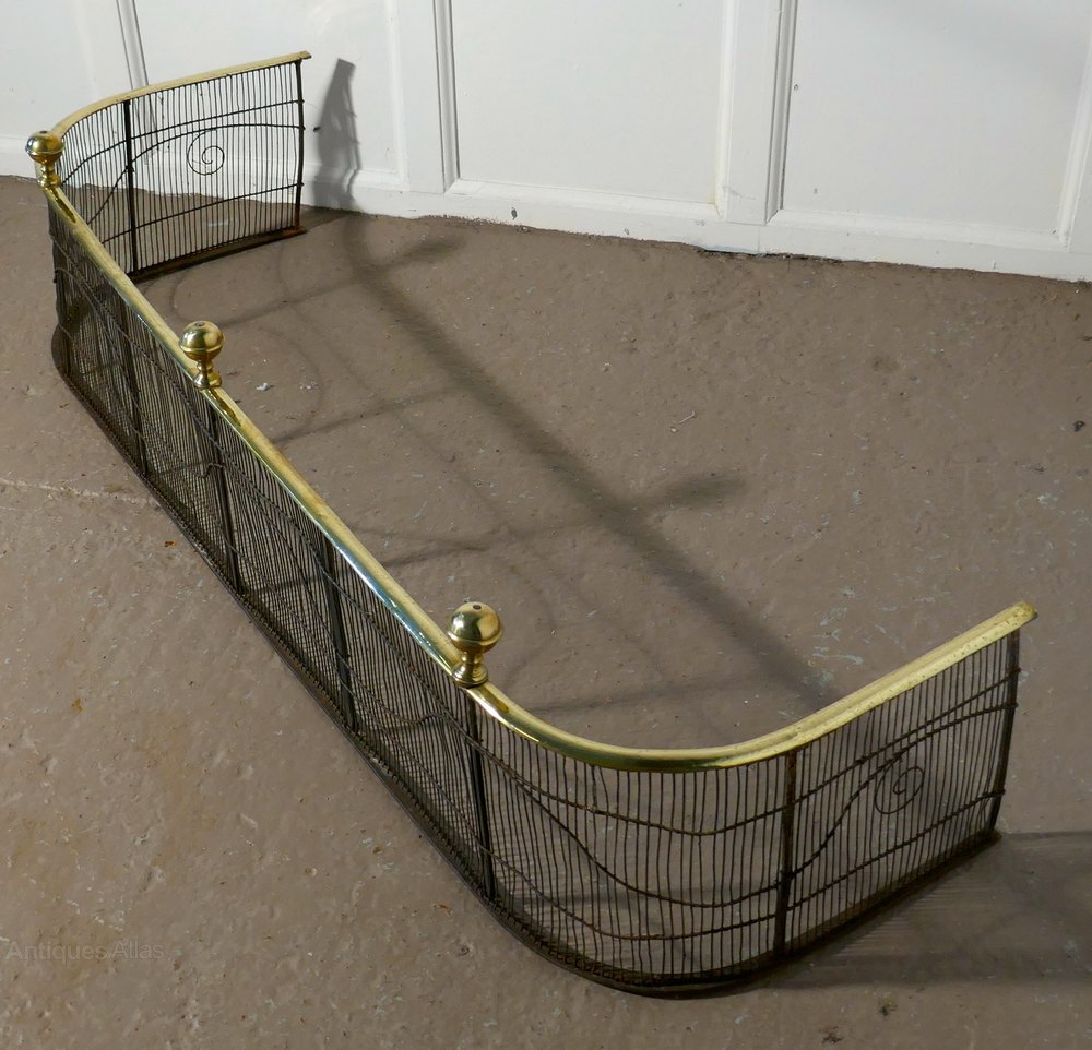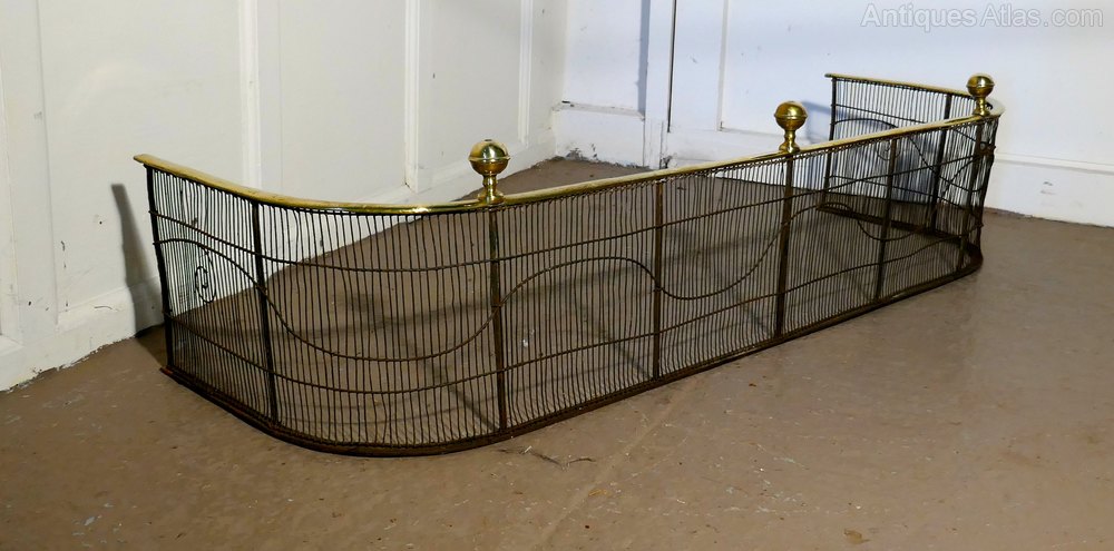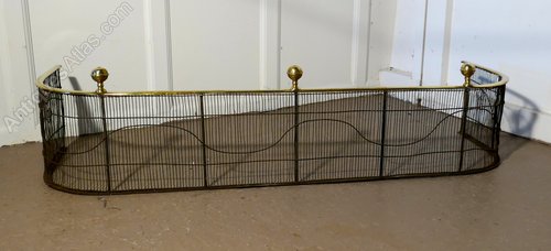 A Georgian antique fire guard often known as a Club Fender, the iron guard has wire mesh and a brass rail at the top and it has large brass knobs on the top, the fender is in good all round condition for its great age