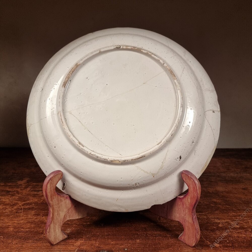 The plate is beautifully painted and has the usual damages that you expect to see with delft of this age, with some cracks chips and a small area that appears to have been glued at some stage.
