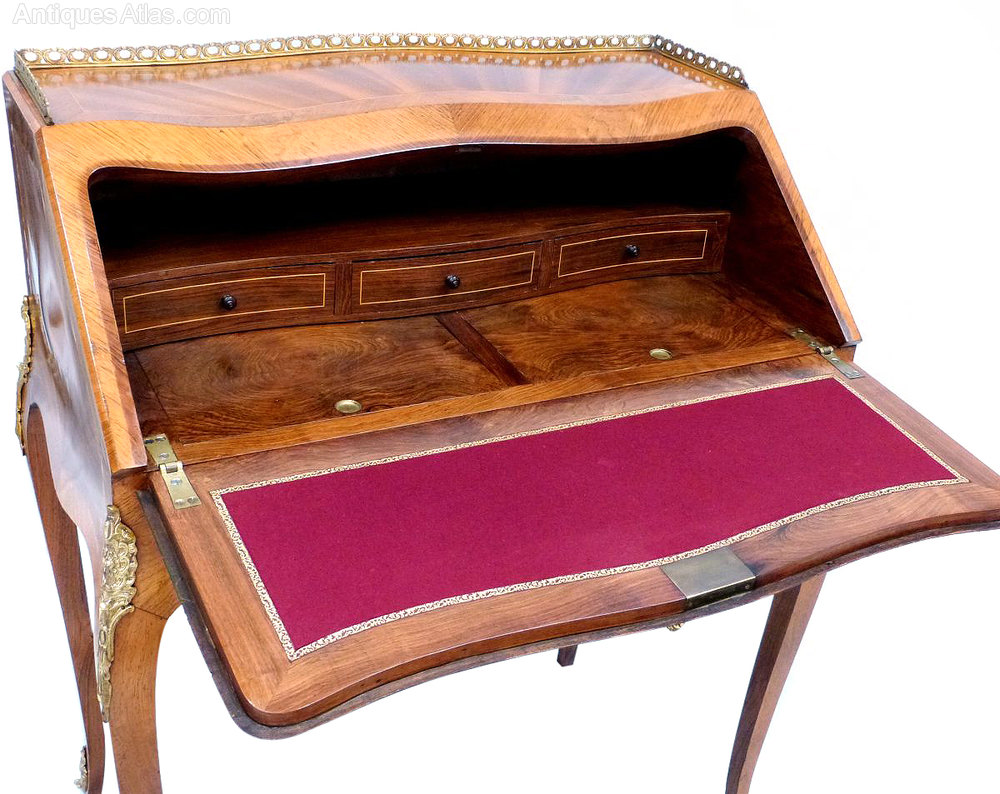 Outstanding Brass Inlaid Ladies Bureau Desk