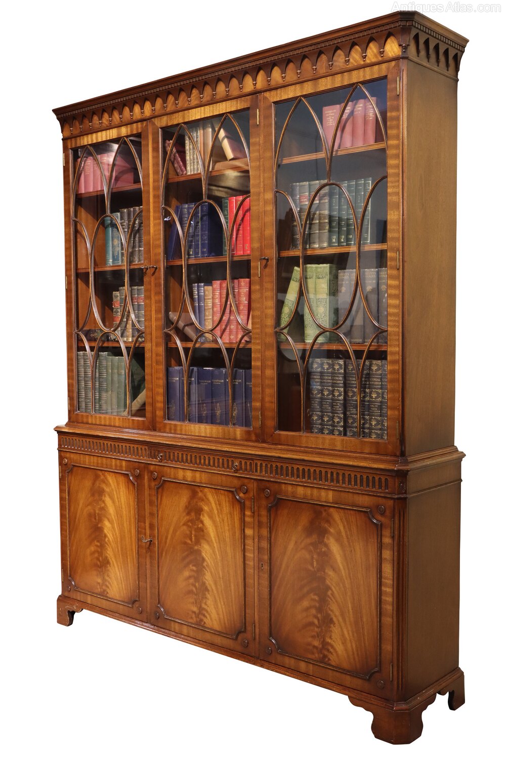 Victorian Mahogany Gothic Breakfront Bookcase
