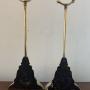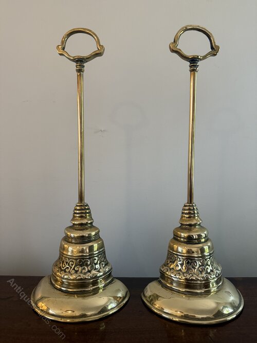These porters feature a weighted base which has a stepped bell shape with decorative scrollwork detailing to the mould a slender column and a looped handle for easy movement.