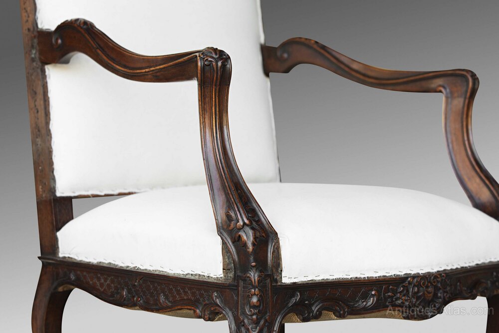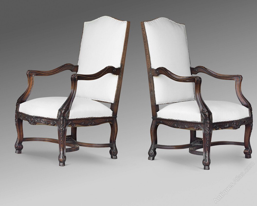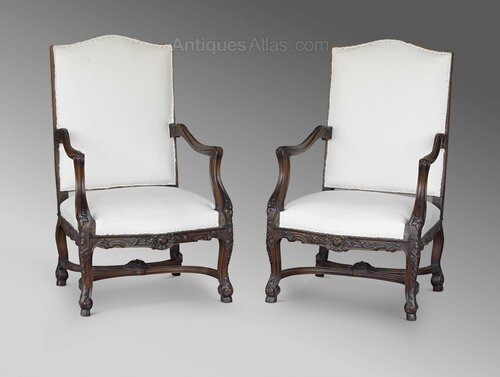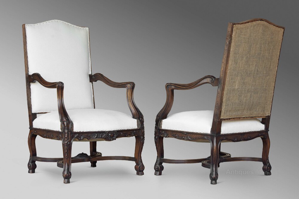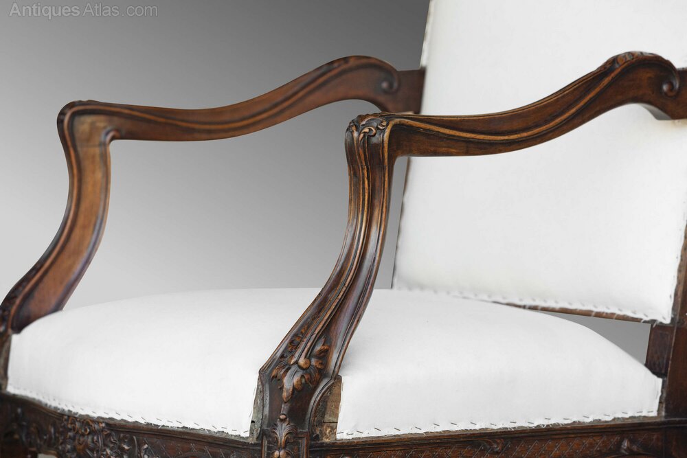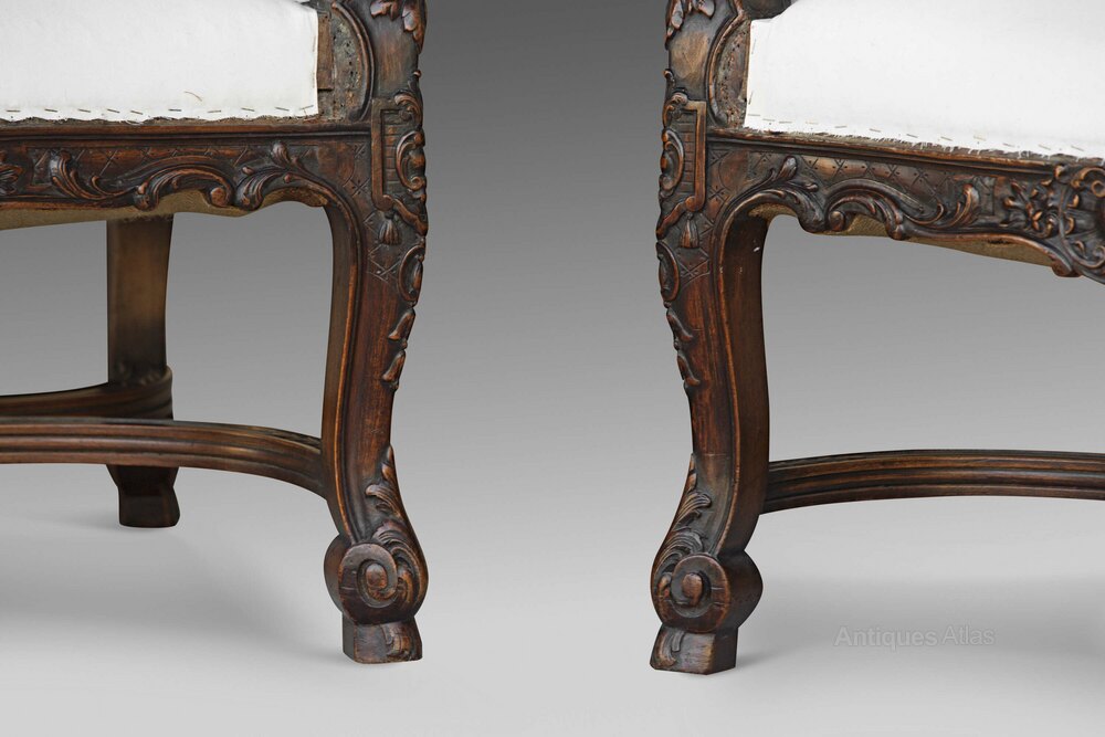 A Pair of French Walnut Fauteuil Armchairs, 19th C