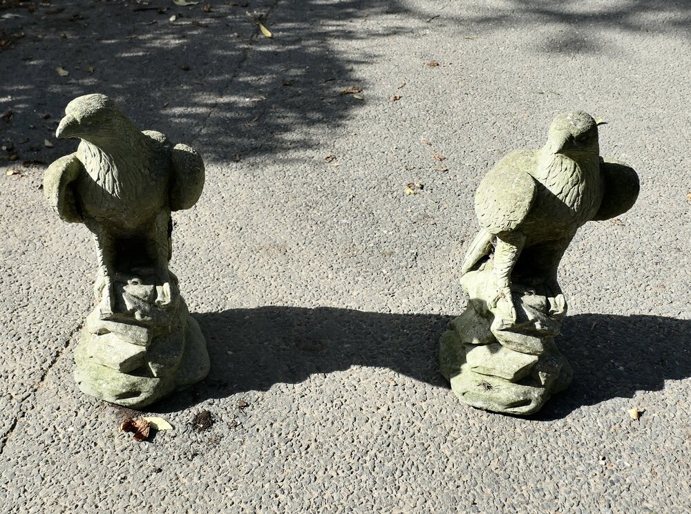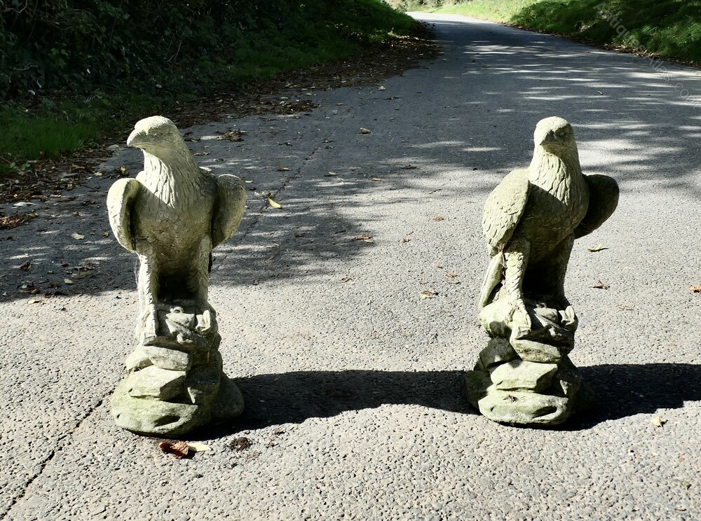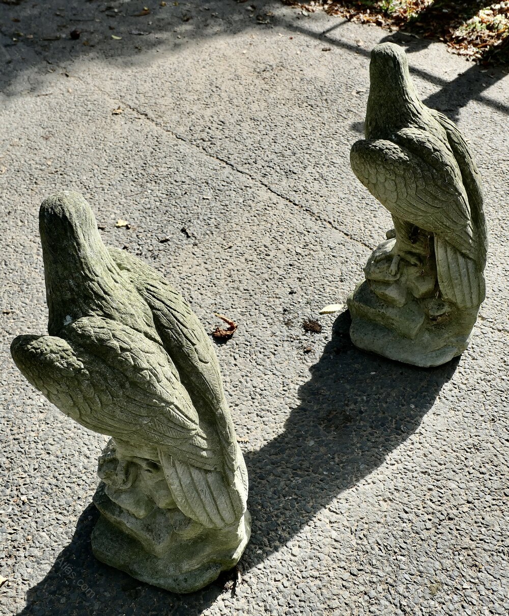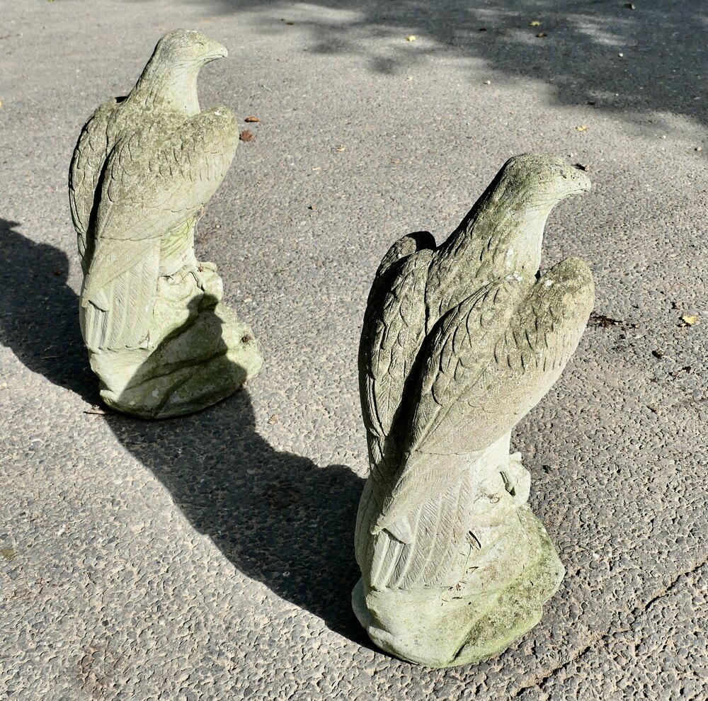 These are lovely old Eagles, they have a little moss and other markings caused by years of exposure to all wethers, other wise in good used condition