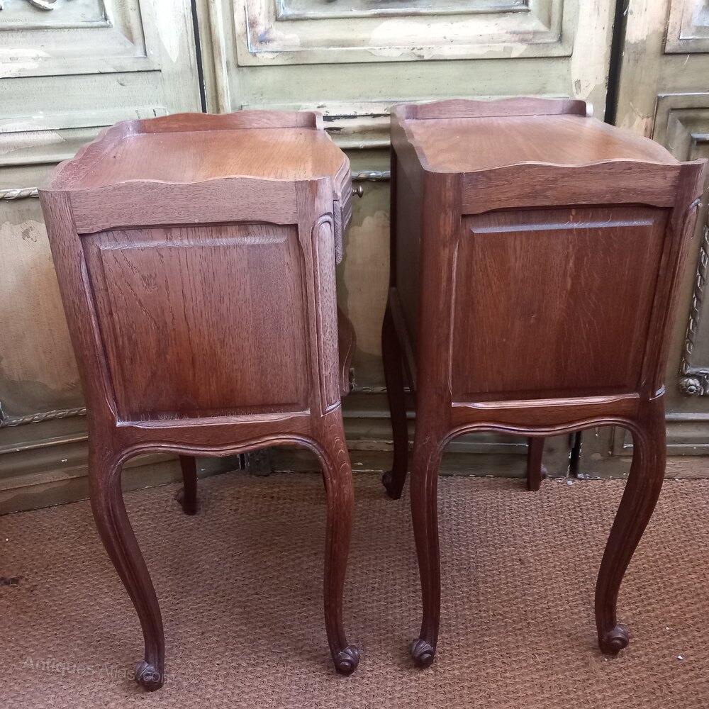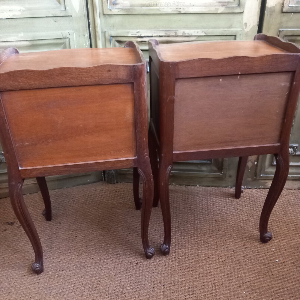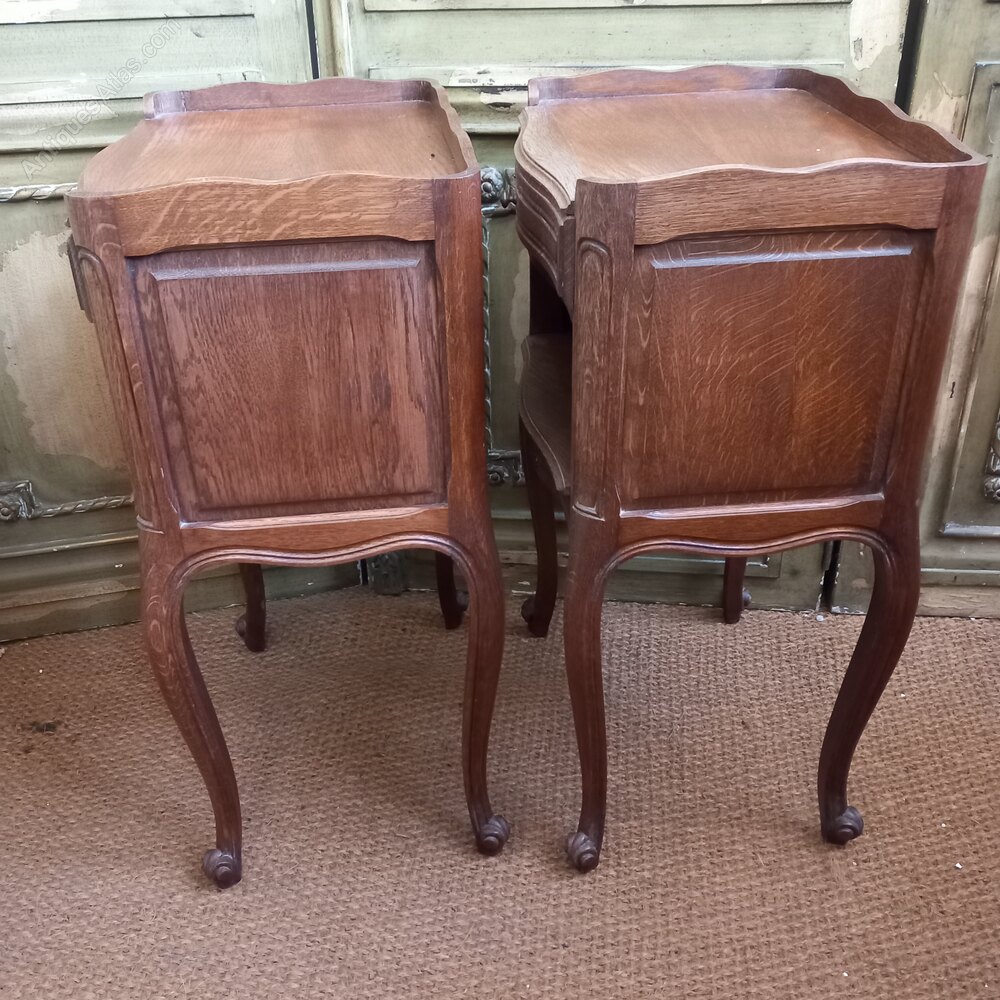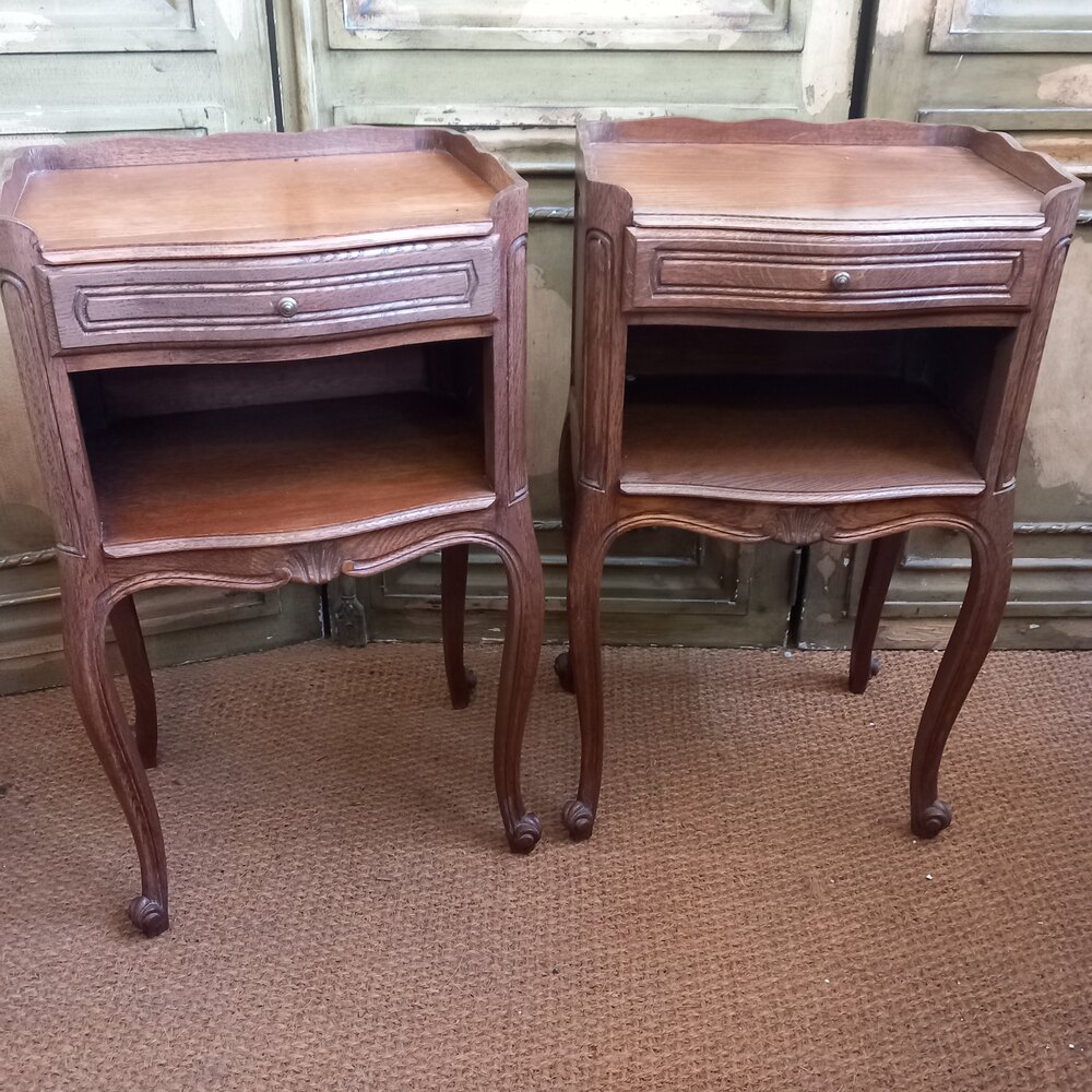 A good pair of bedside antique tables in oak that work well also as lamp tables around the home. The dimensions are 68 cm ht x 39 cm w x 31 cm deep.