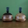 A Pair of Solid Teak Vintage Round Table Lamps
