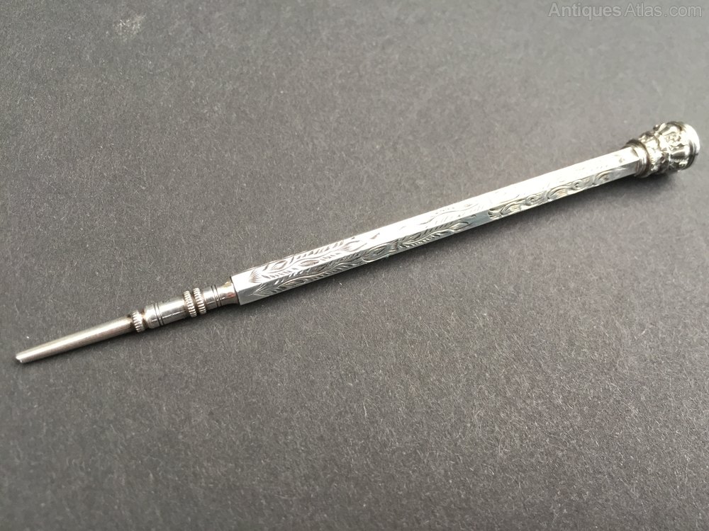 A quality telescopic pencil with floral decoration to the barrel with anathyst, no markings
