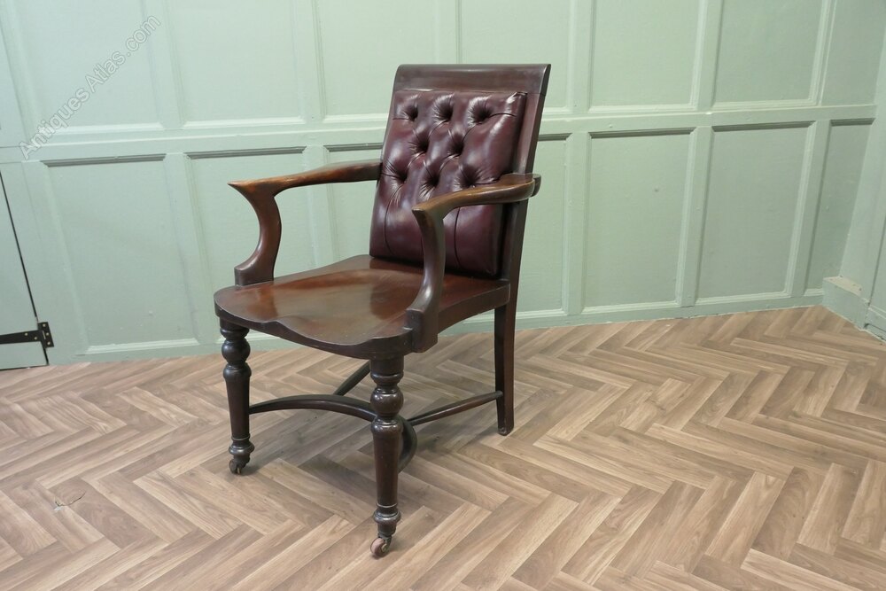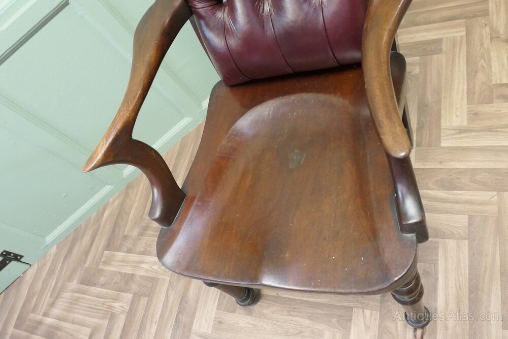 Victorian Scottish Mahogany Leather Captains Chair