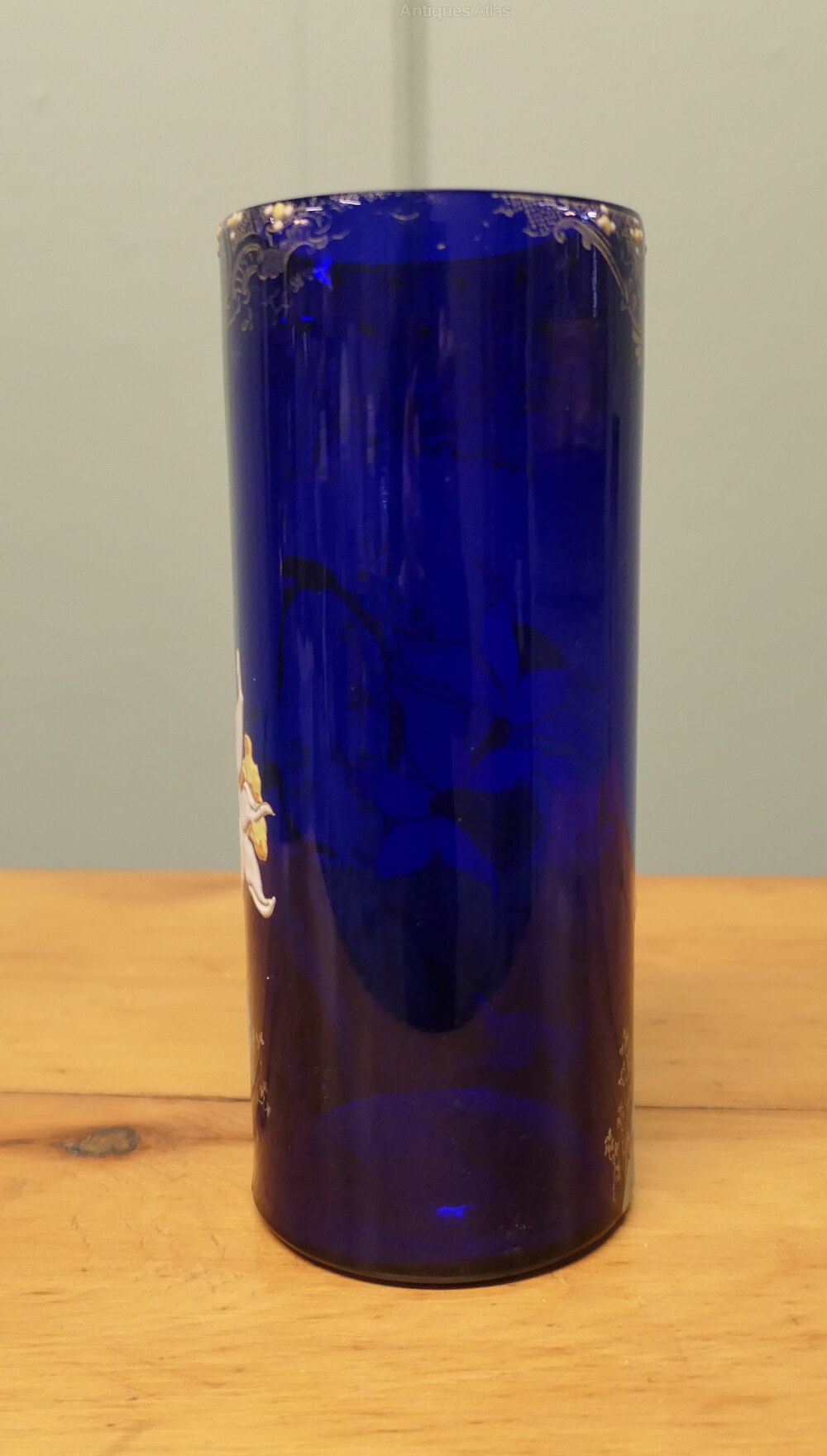 A Stunning Cobalt Blue Enamelled Vase Daffodils