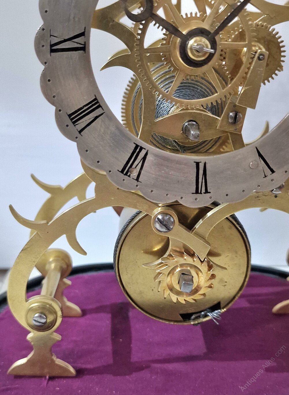20thC Skeleton Clock in original glass dome