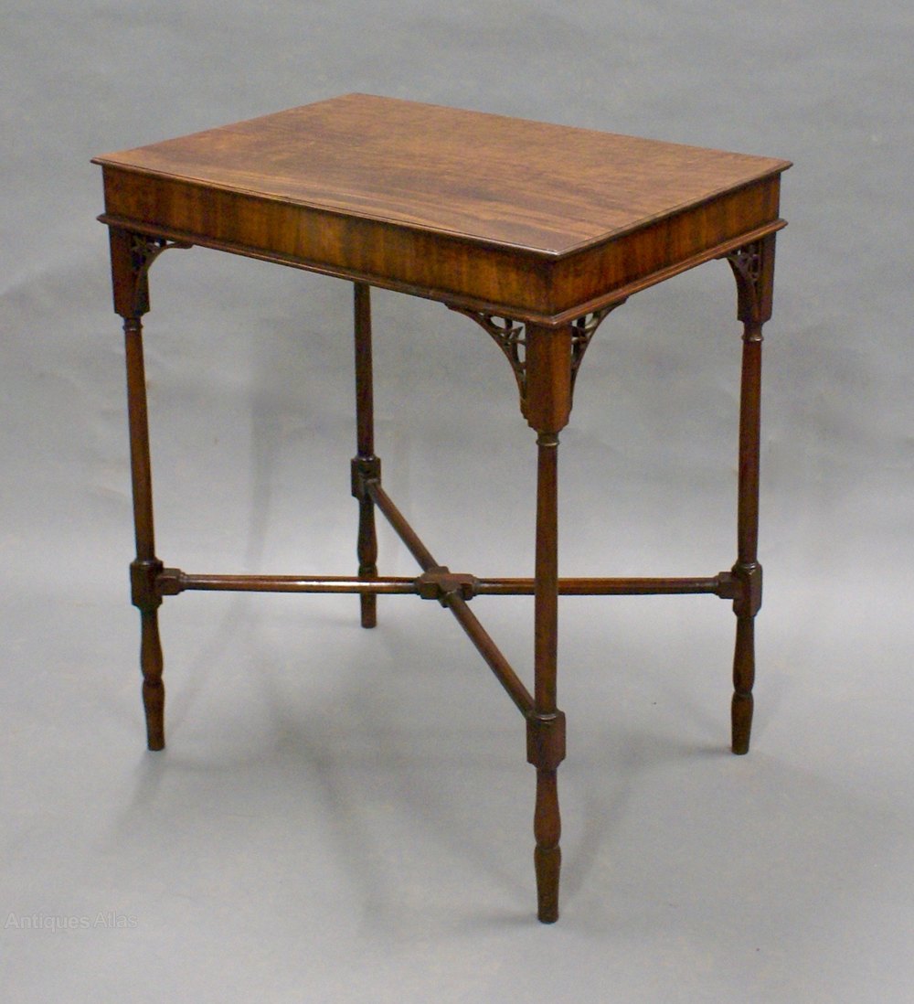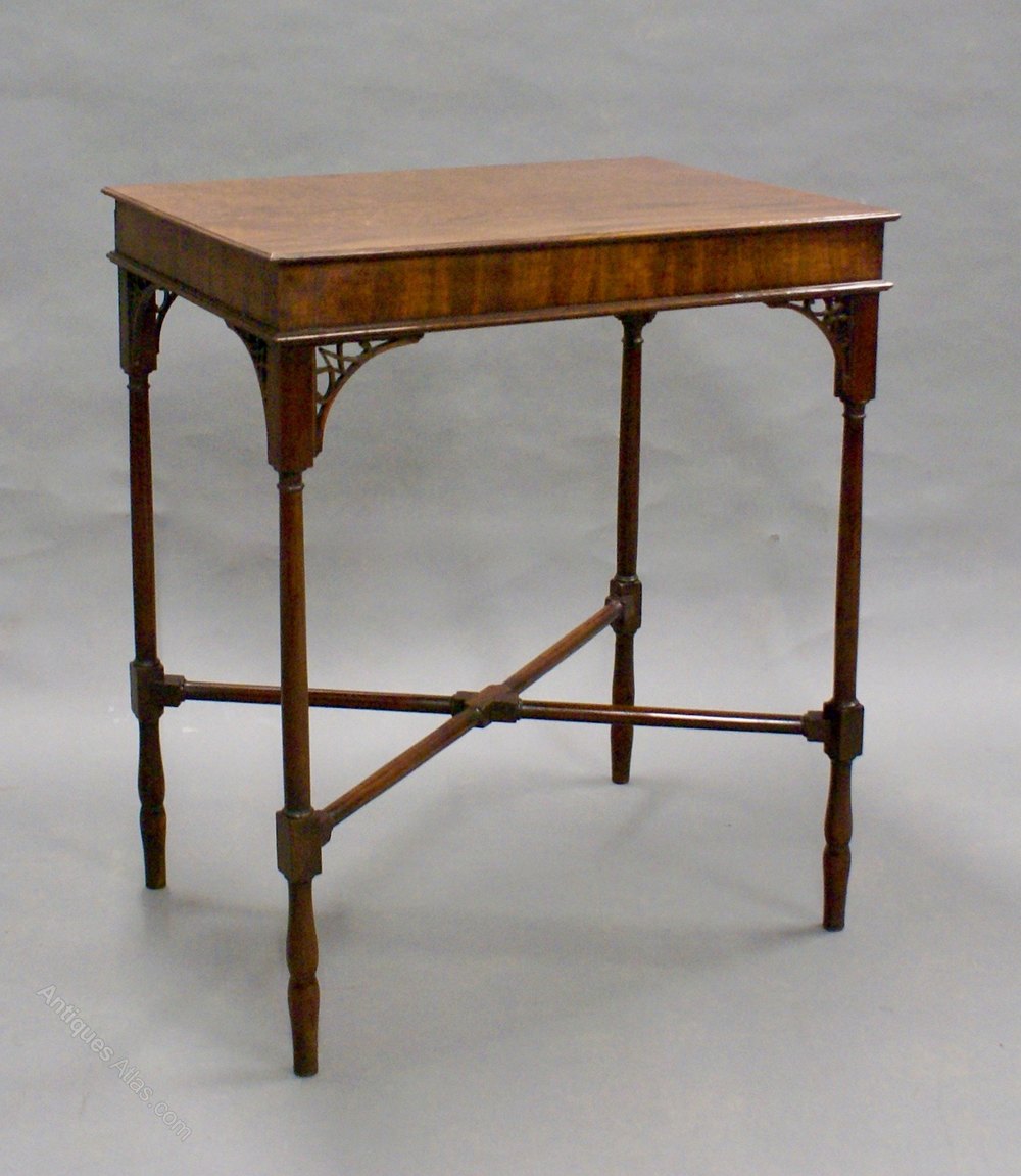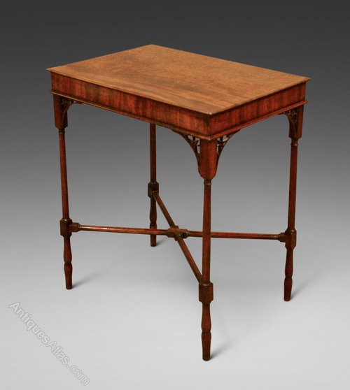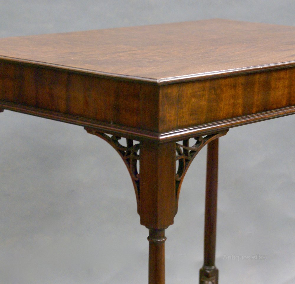 Raised on fine turned legs which are united by a cross stretcher and with fretted brackets, astragal molded frieze and on piece top. The table is in very good and original condition having been lightly and sympathetically polished. 710mm high, 610mm wide and 430mm deep. English. Circa 1790.