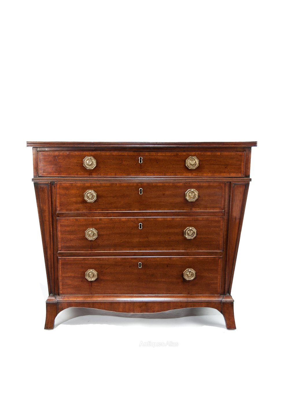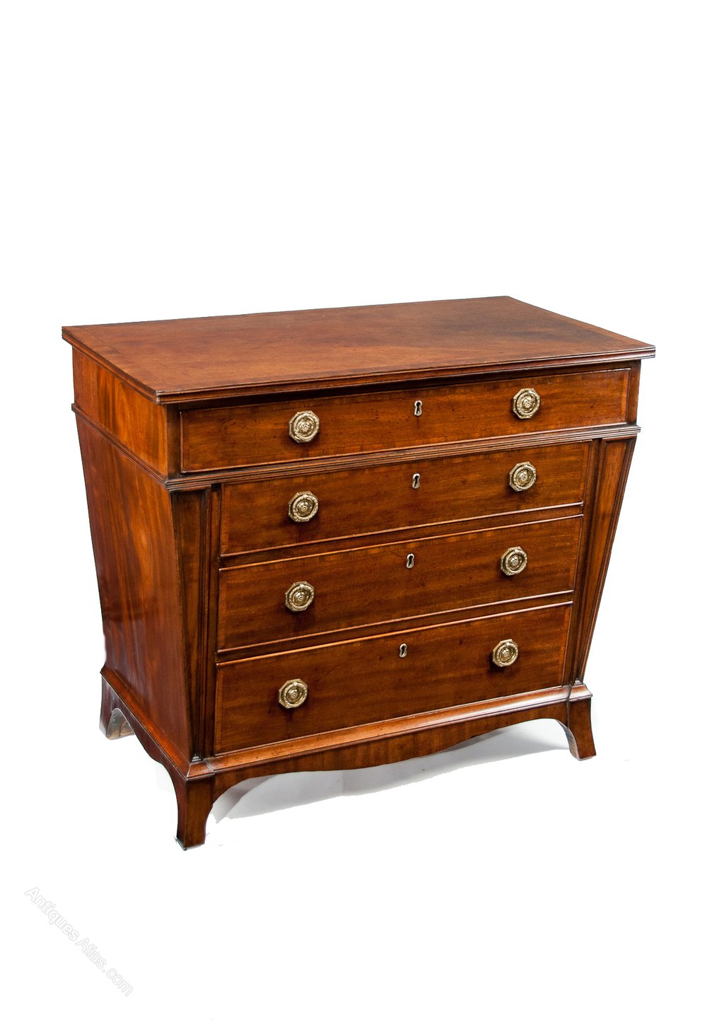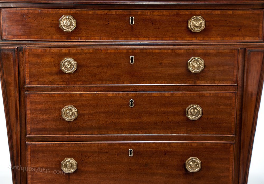 An extremely rare and wonderfully shaped 3-foot wide George III mahogany antique chest of drawers circa 1790-1800.