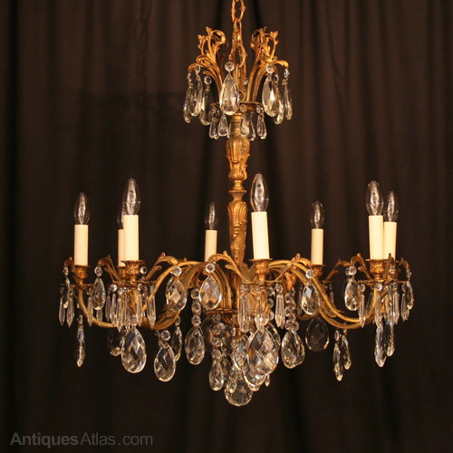 French Pair Bronze 8 Light Antique Chandeliers