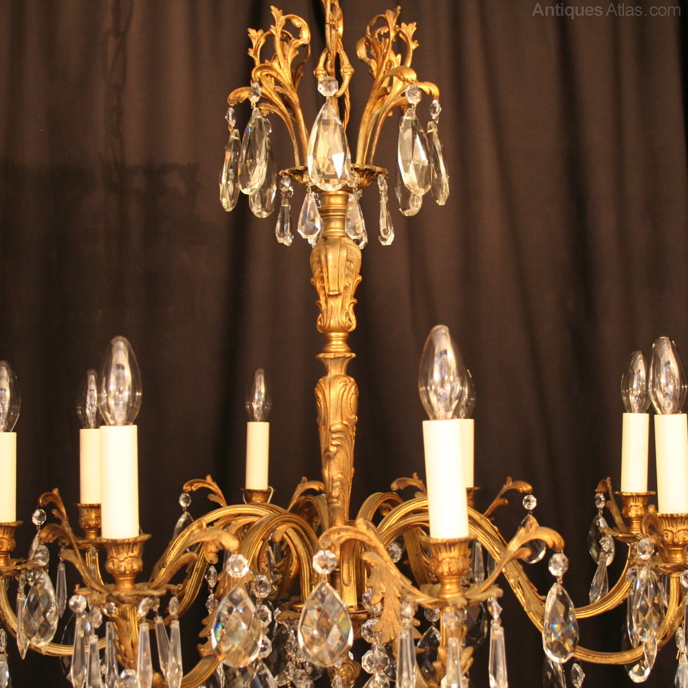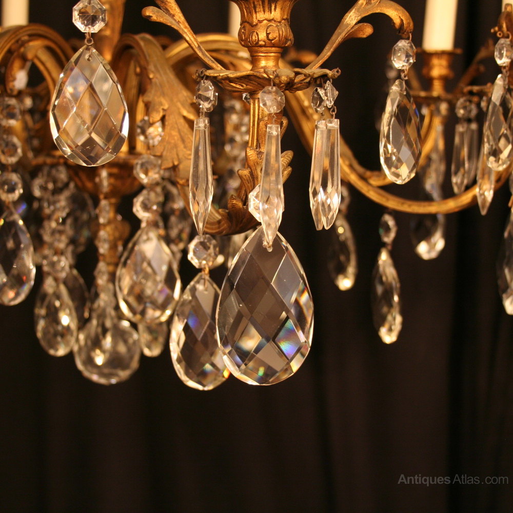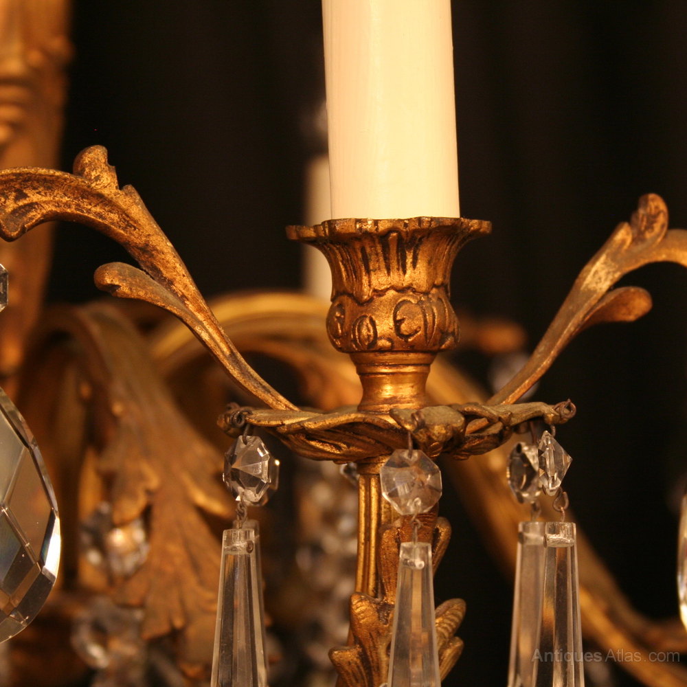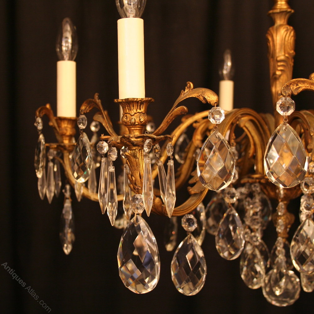French Gilded Bronze 6 Light Antique Chandelier