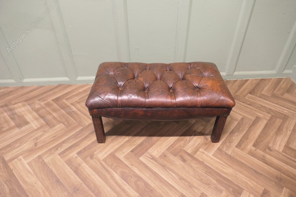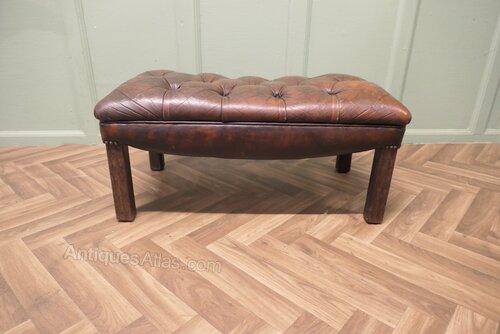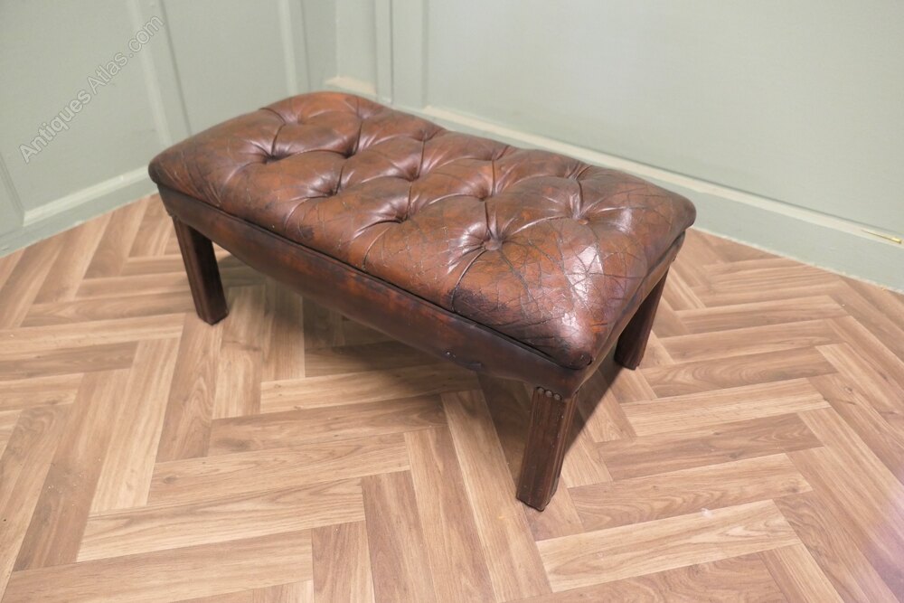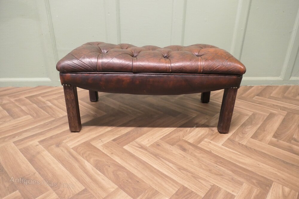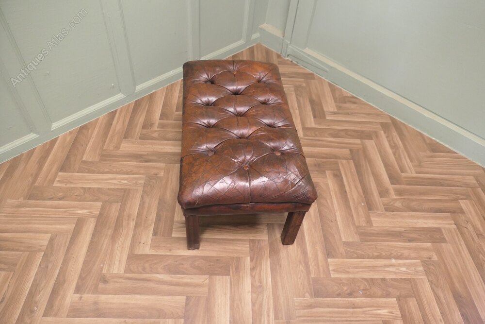 An Old Deeply Buttoned Chesterfield Leather Library Stool