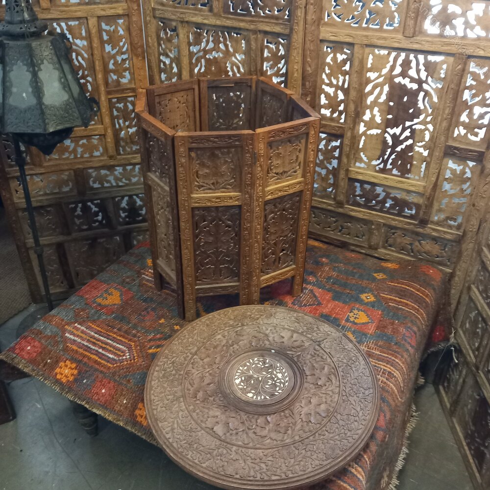 Antique Campaign Tea Table, Anglo-Indian, Carved