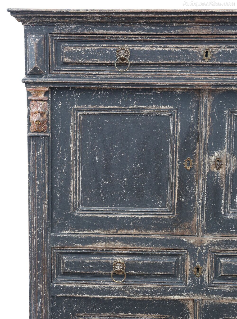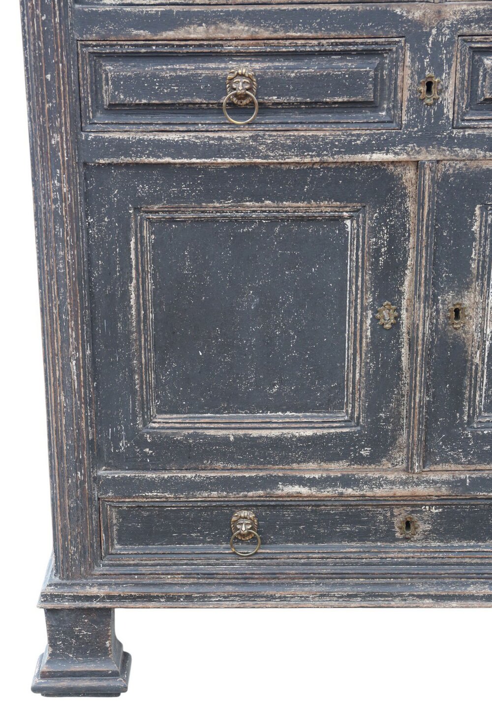 Also known as an estate cupboard, this fine 19th-century painted larder is a wonderful example of period country house furniture. With its lion-mask detailing and beautifully worn grey painted finish, it exudes character and timeless rustic charm.