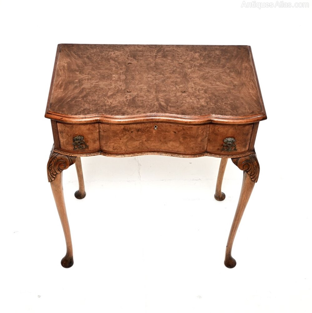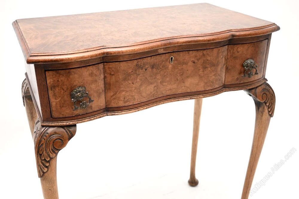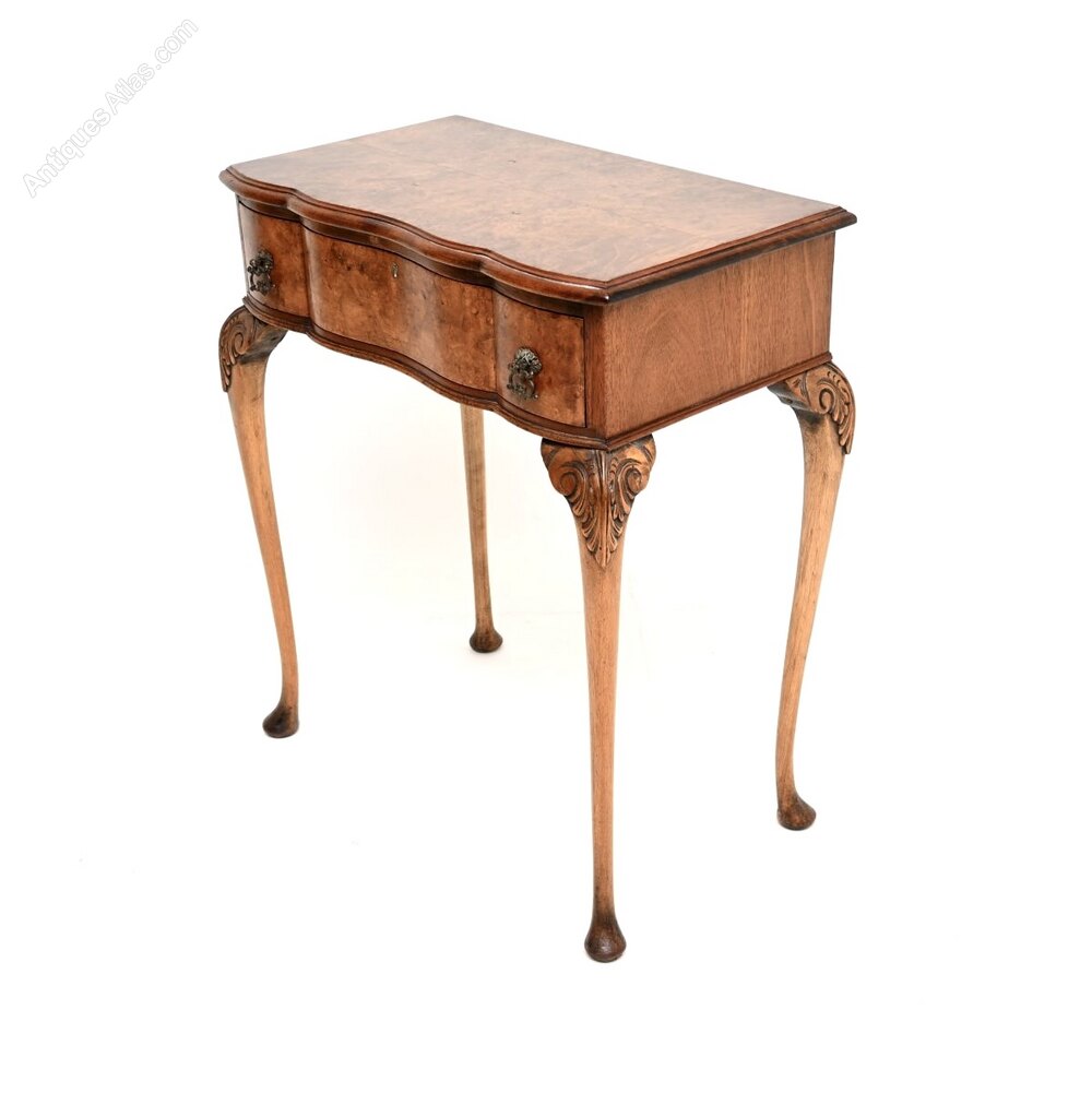 A gorgeous antique burr walnut console / side table in the Queen Anne style. This was made in England, it dates from around the 1930’s.