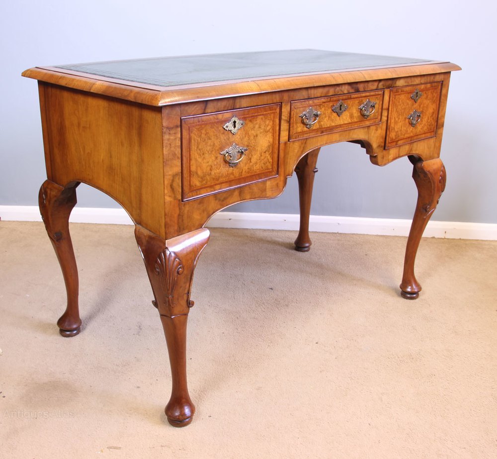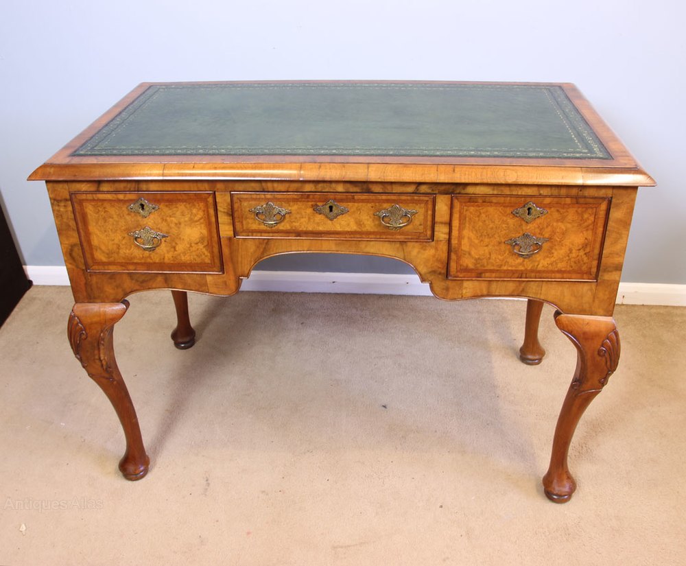 Antique Burr Walnut Leather Top Writing Table