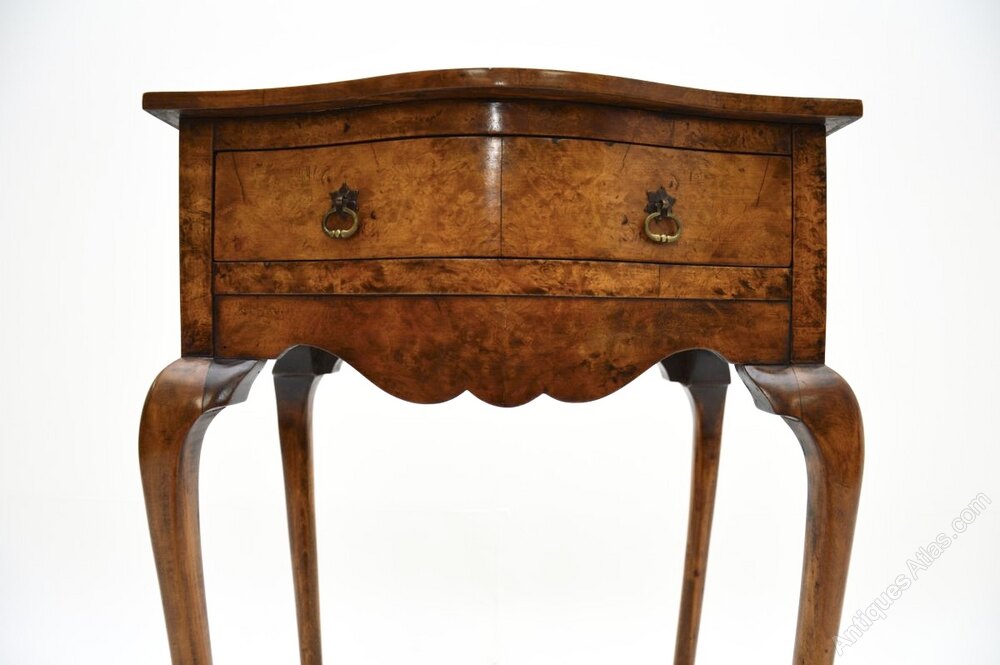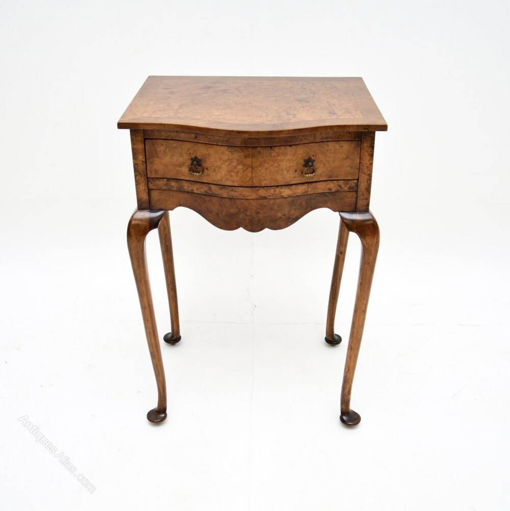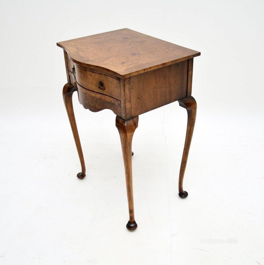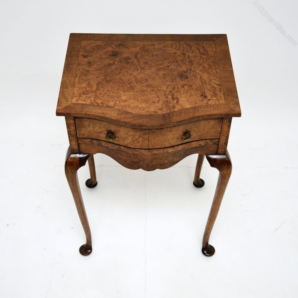A beautiful and elegant antique burr walnut side table, made in England and dating from the 1900-1910 period.