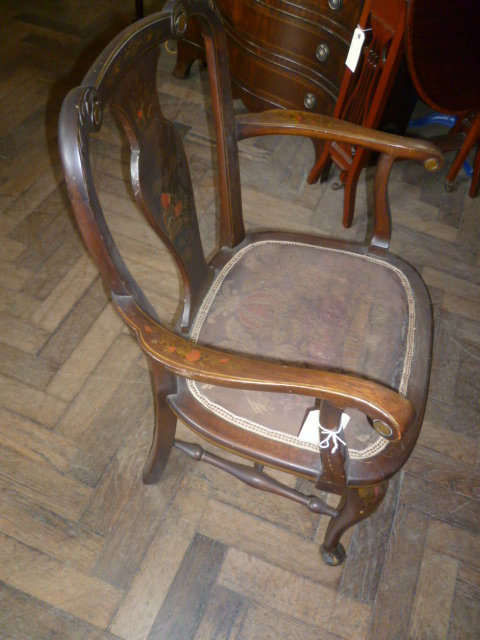 Pair Of Queen Anne Style Walnut & Leather Chairs