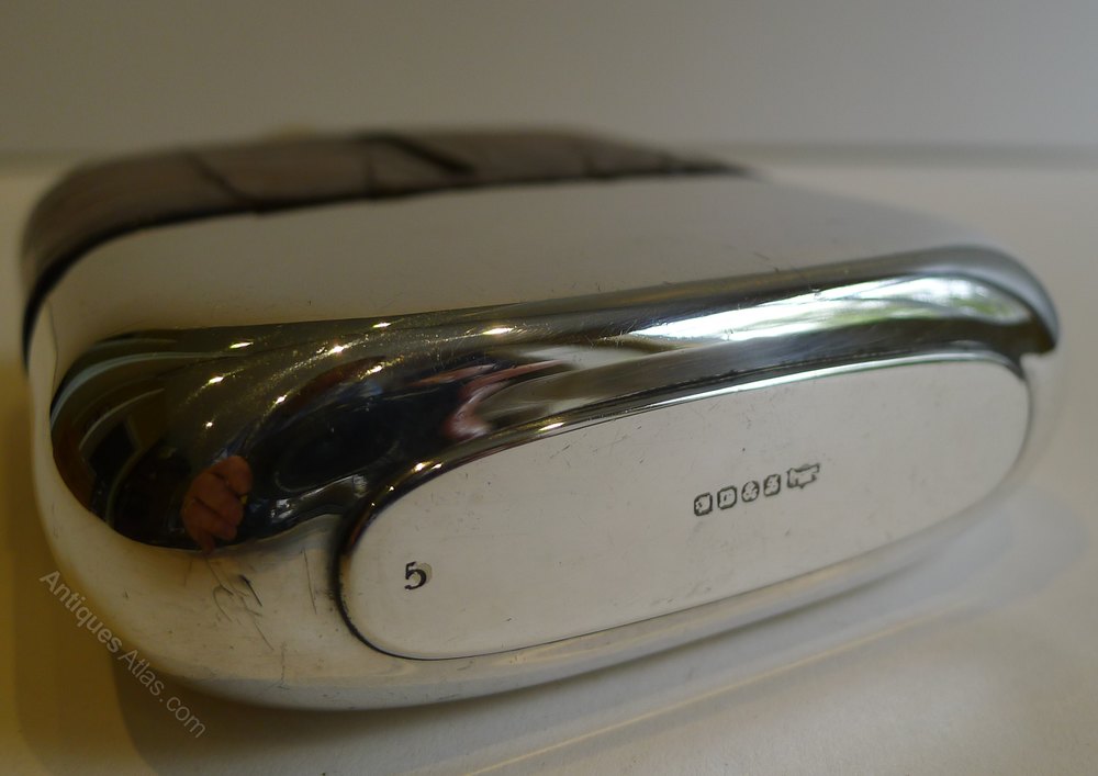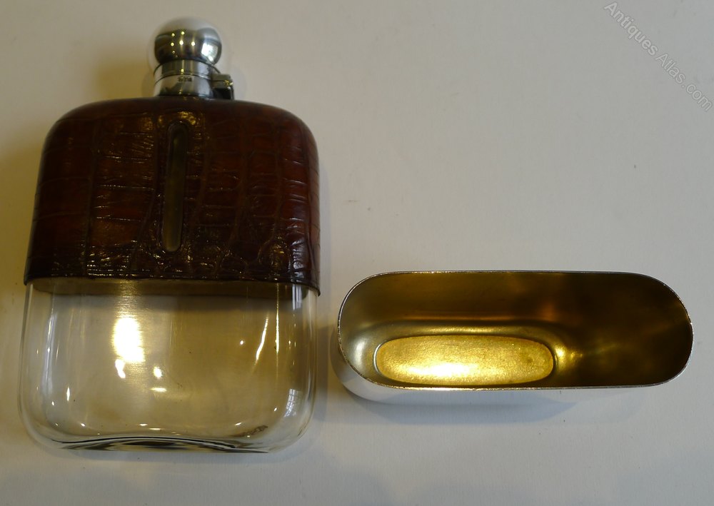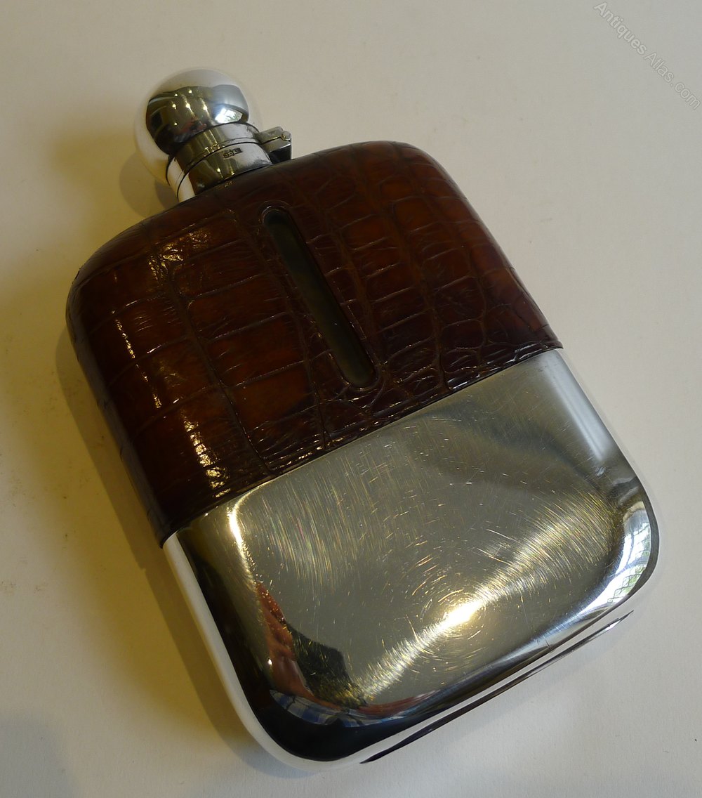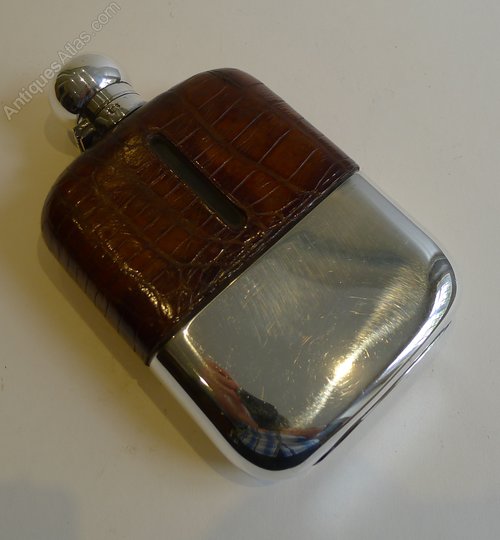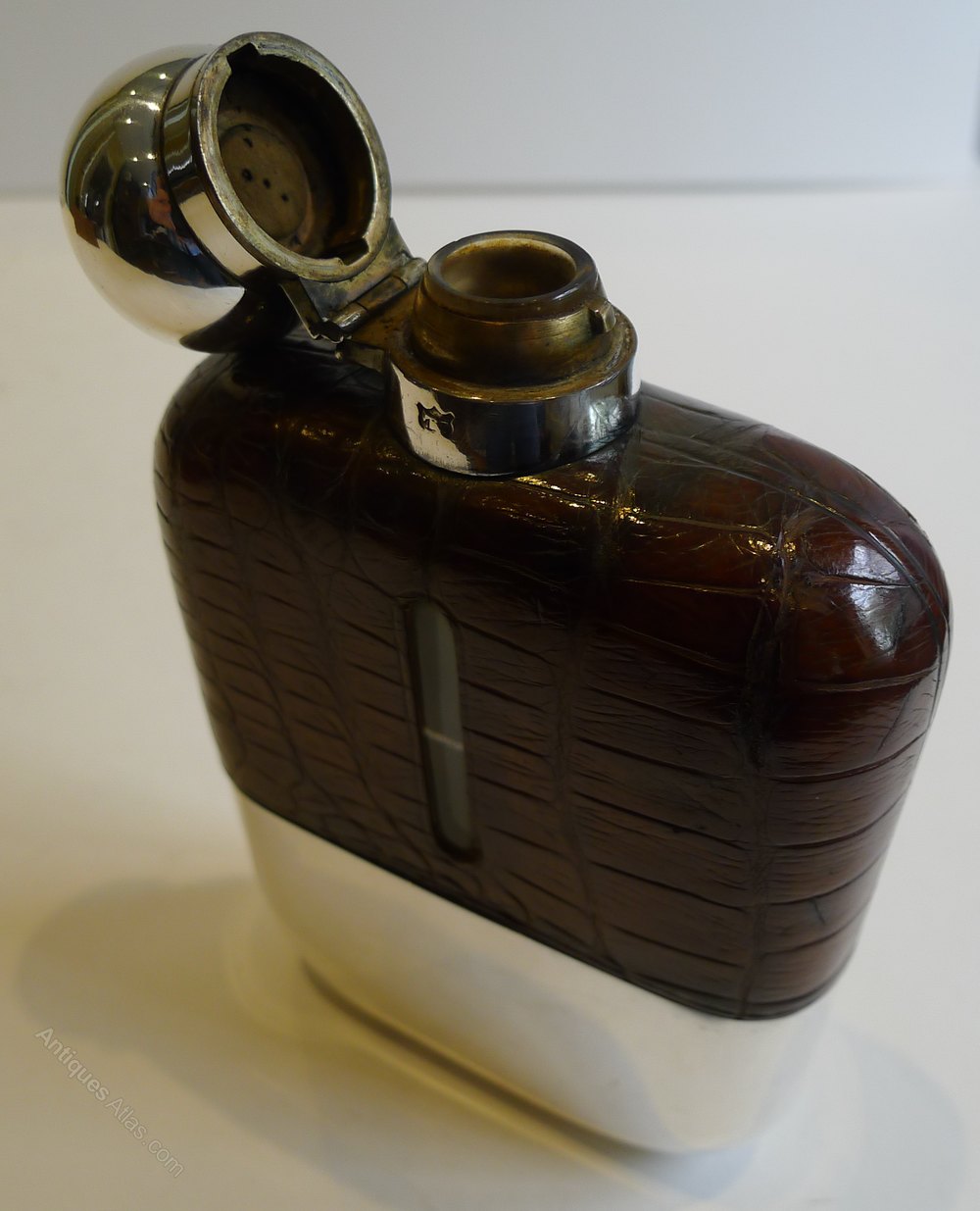 Antique Crocodile & Silver Plated Hip Flask c.1910