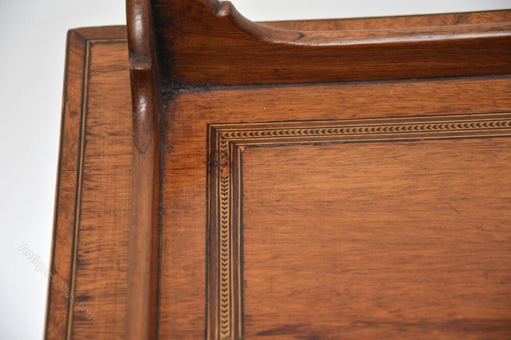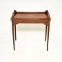 It is of fine quality and is a very useful size. The raised edges give this a great look, it would be perfect as a drinks serving table among other uses. It stands on beautifully tapered legs, the top has fine inlays of satin wood around the border and in the centre.