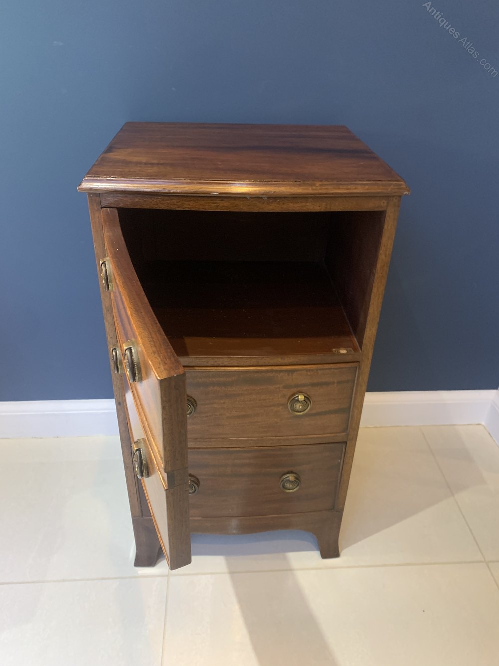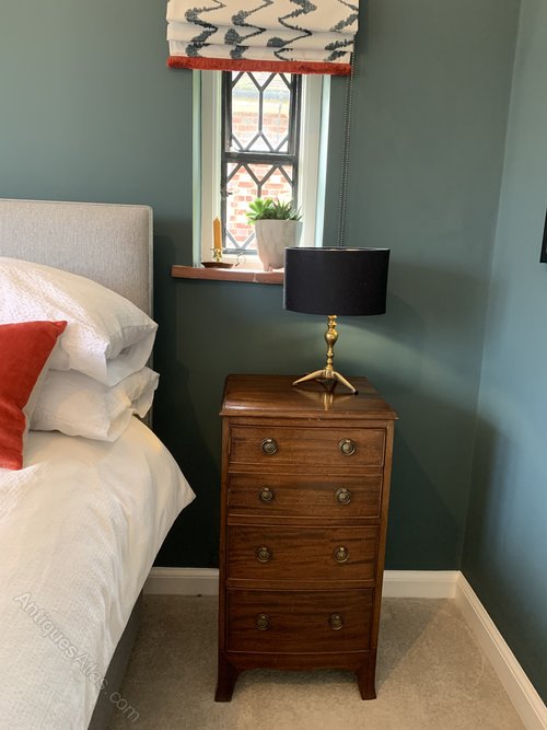 Beautiful and very useful mahogany compact bedside chest of drawers with a cupboard and two drawers. Very much in the Regency or Georgian style but we have dated this as an Edwardian antique due to the superb condition and finish.