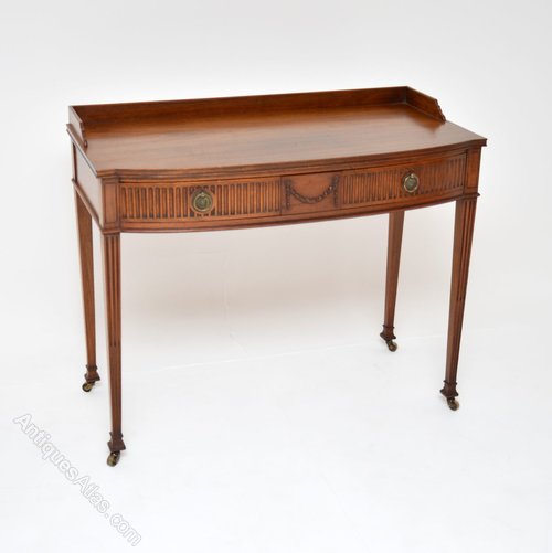 This superb antique Sheraton revival mahogany table could be used as a writing table or a side side table. This was made in England, it dates from the 1900-1910 period.