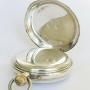 The watch measures 50mm diameter excluding the winding stem and the loop. The case is silver and there are hallmarks inside both case backs for London 1891, with a maker’s mark for the London case maker Philip Woodman & Sons. The case is in lovely condition. The back of the watch has ornate initials.