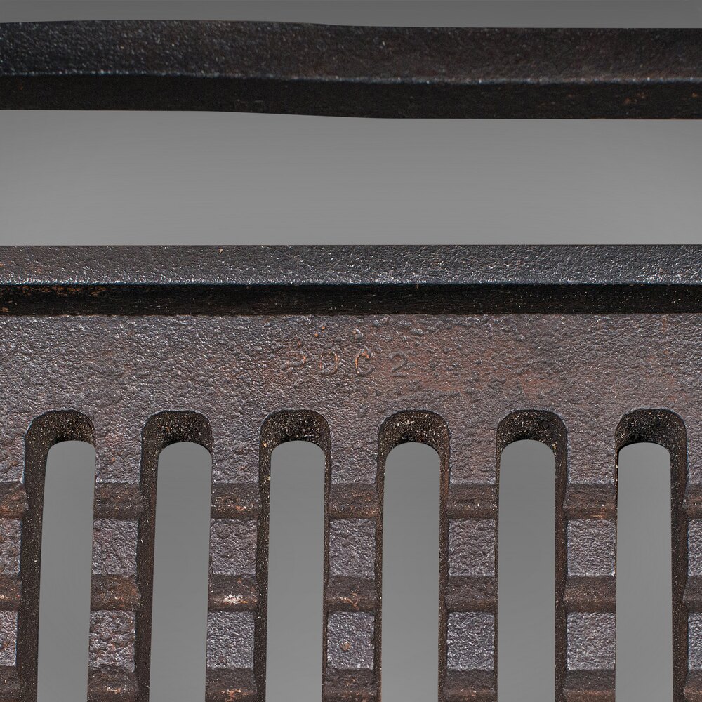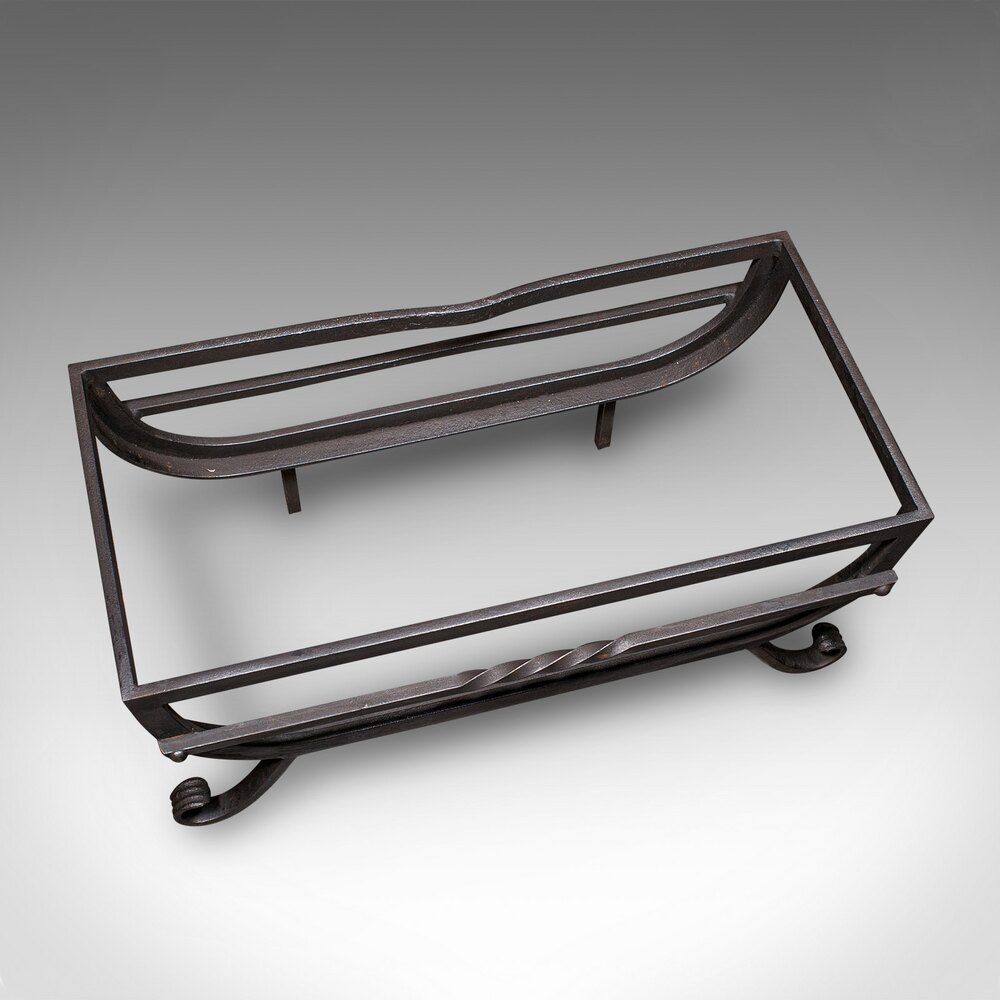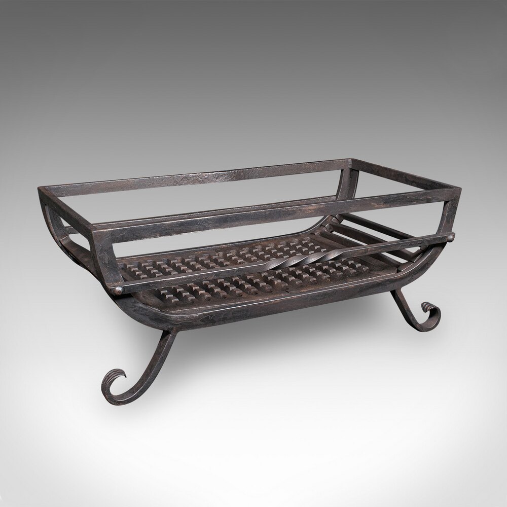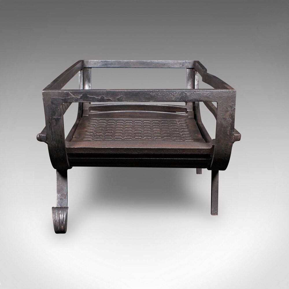 This is an antique fire basket. An English, cast iron fireplace grate dating to the Edwardian period, circa 1910. A charming, self-contained fireside piece with appealing form and excellent utility.