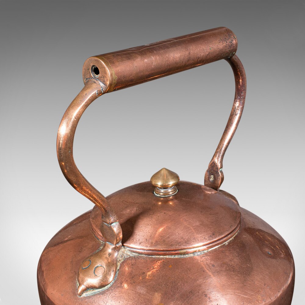 This is a charming antique fireplace kettle. An English, copper hearth warmer with fine form and character, dating to the Victorian period, circa 1870. Wonderfully tactile and rich in period charm, ideal for fireside display or traditional interior styling.