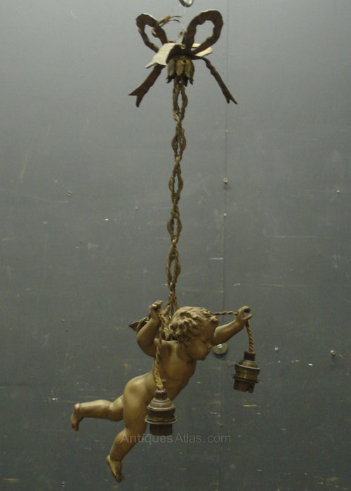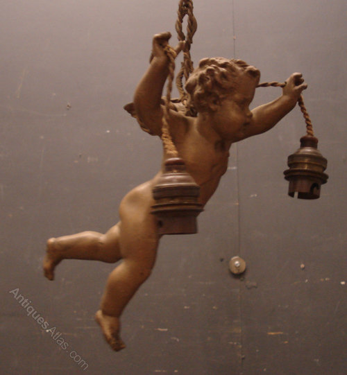 Antique French Cherub Ceiling Light