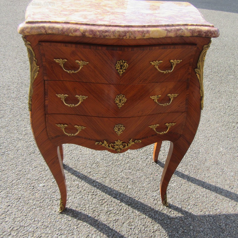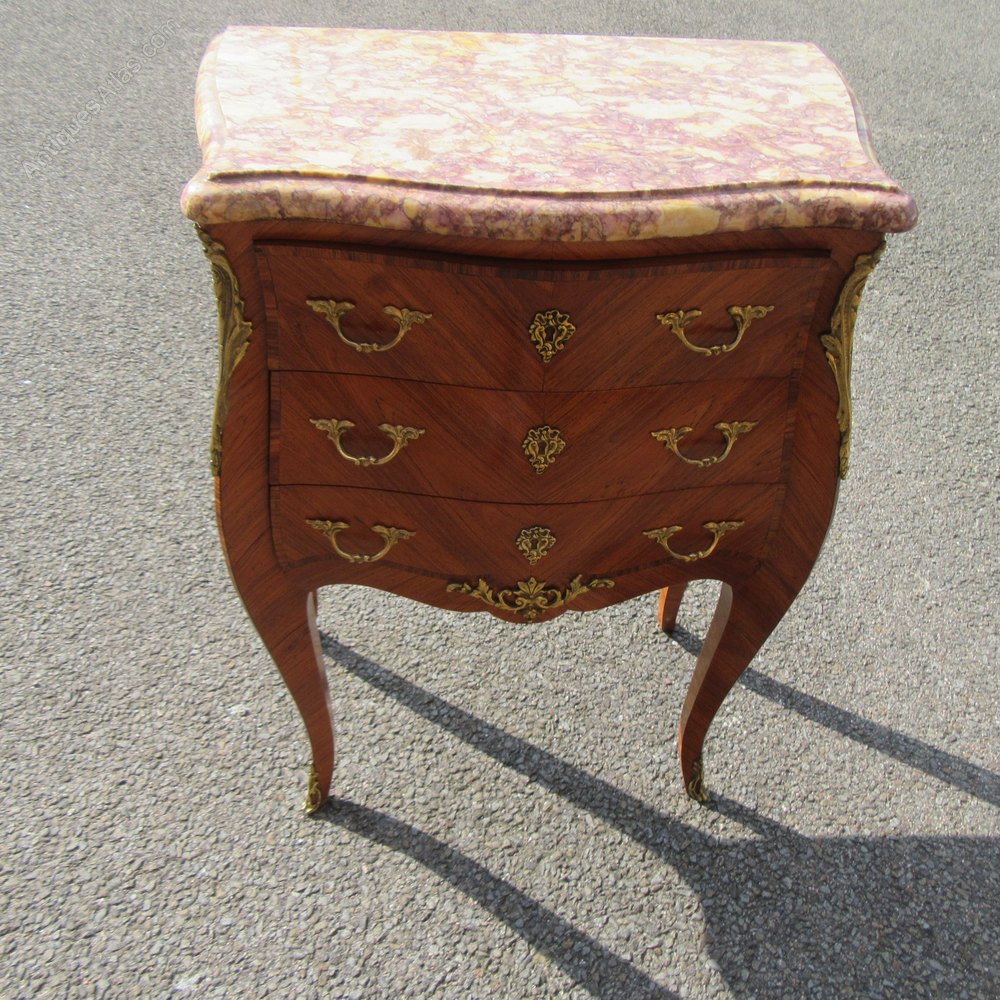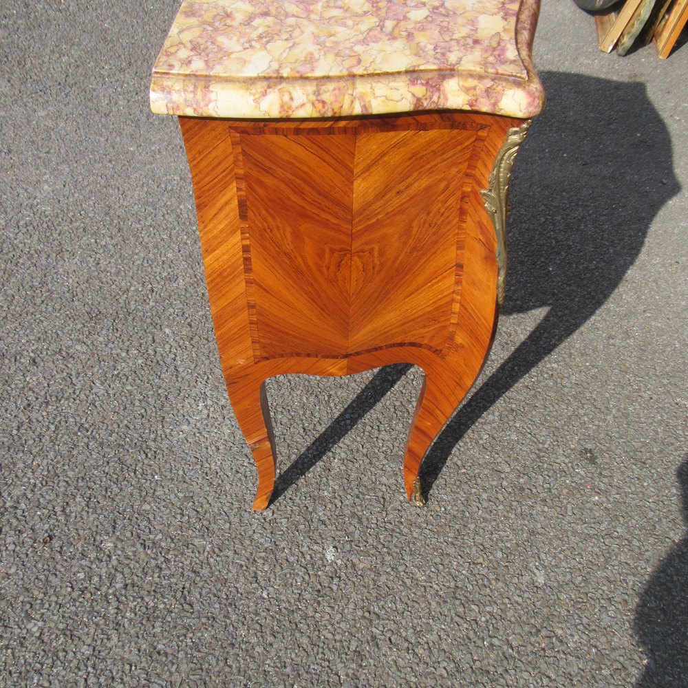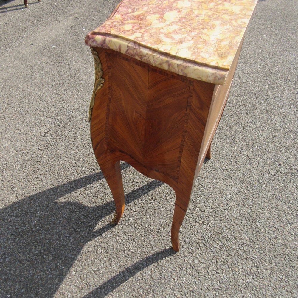 Antique French Inlaid Chest of Drawers with Shaped Marble Top and Ormolu Mounts .76 cm high ,5 cm wide,32 cm deep