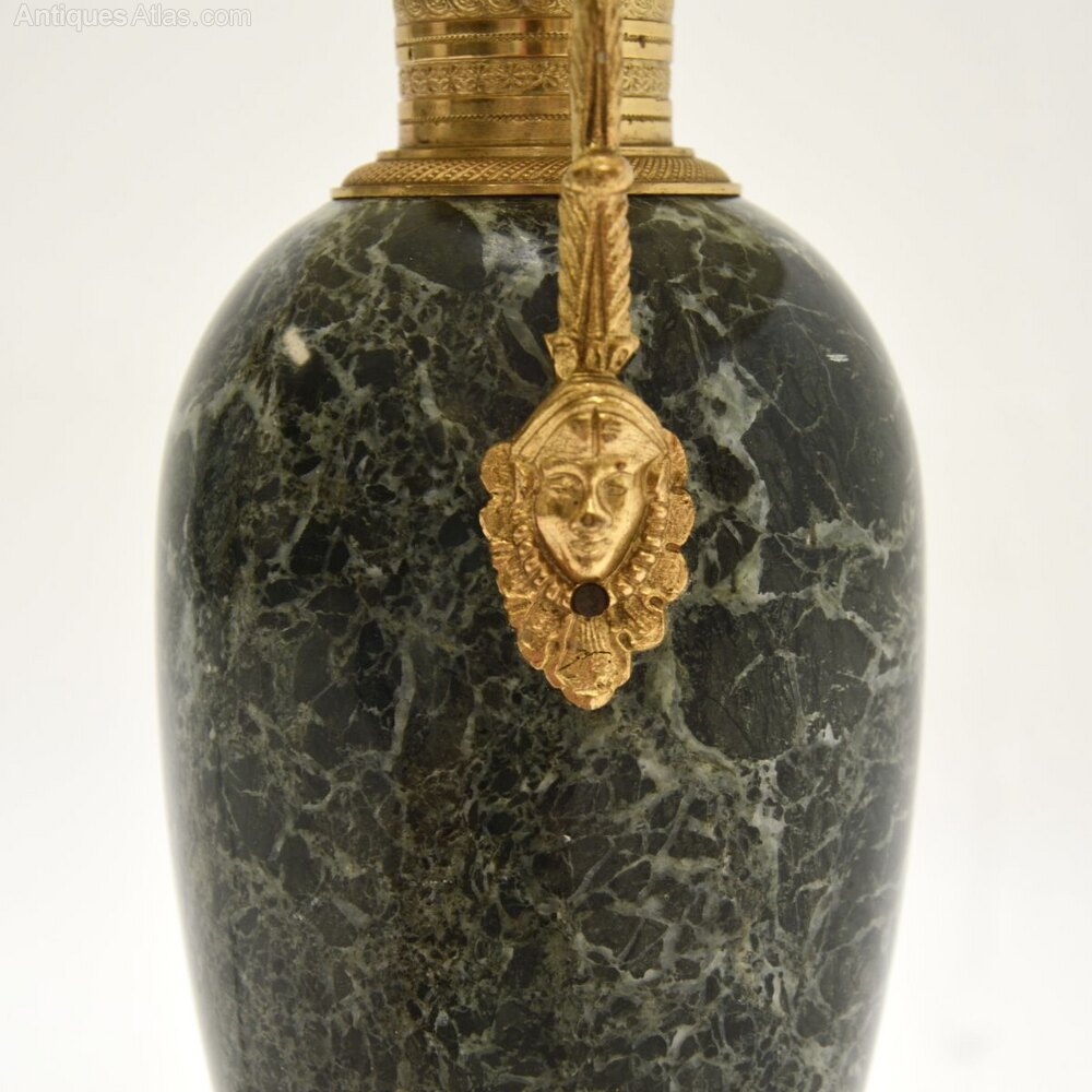 The quality is superb, this is an impressive size and has a gorgeous design. The green marble has stunning colours, this has wonderful gilt metal fixtures with beautiful and intricate details.