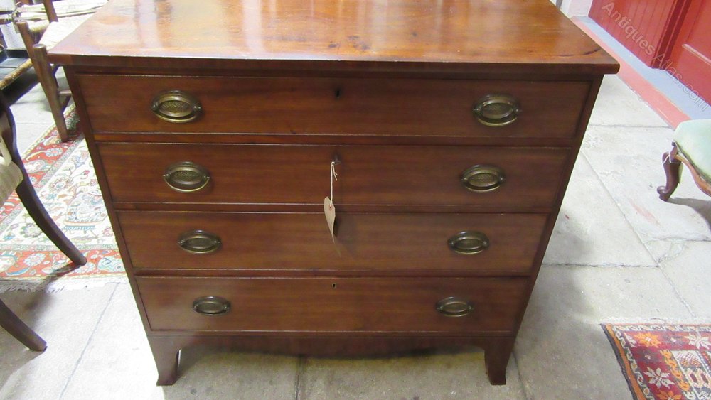 Antique Georgain Mahogany Chest of Drawers with Good Patina ,Pine Lined Drawers and with Ebony Stringing to the sides .92 cm high ,95 cm wide,45 cm deep