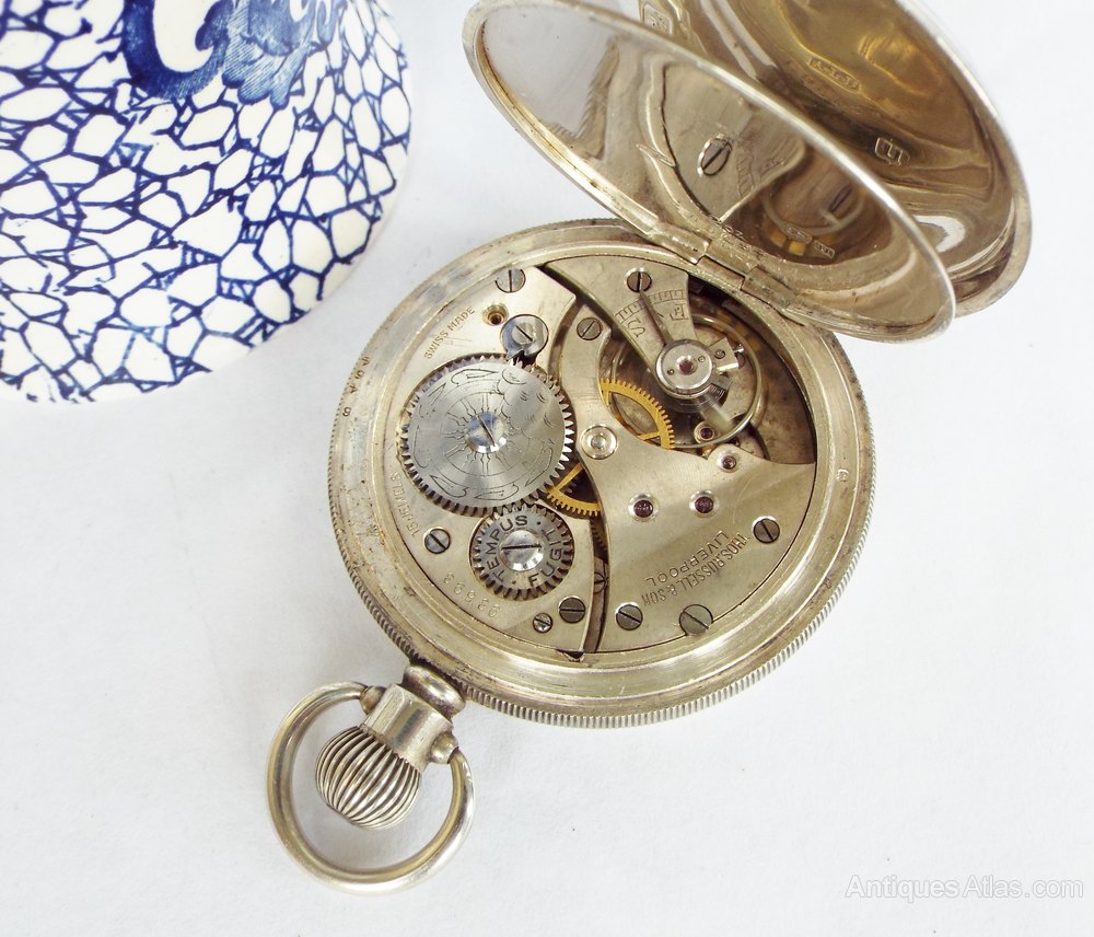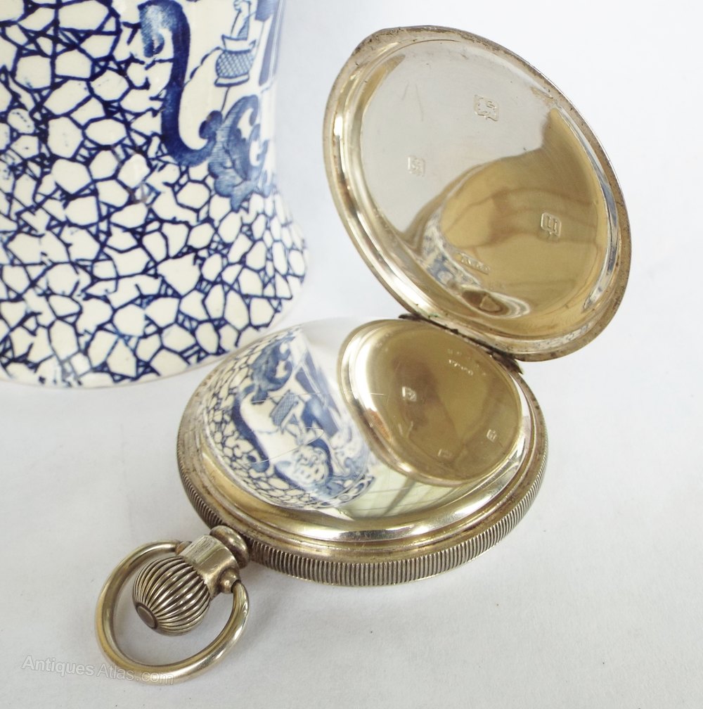 Antique English silver pocket watch, 1913