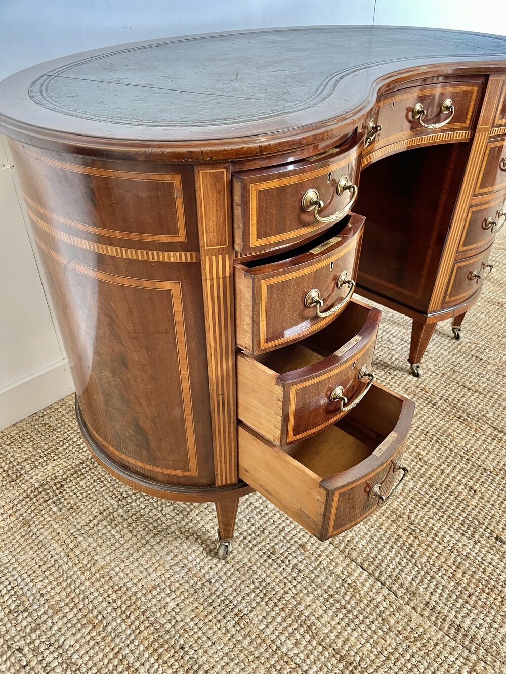 Having 9 mahogany lined drawers , this a very practical neat sized desk , would all so make a great dressing table
