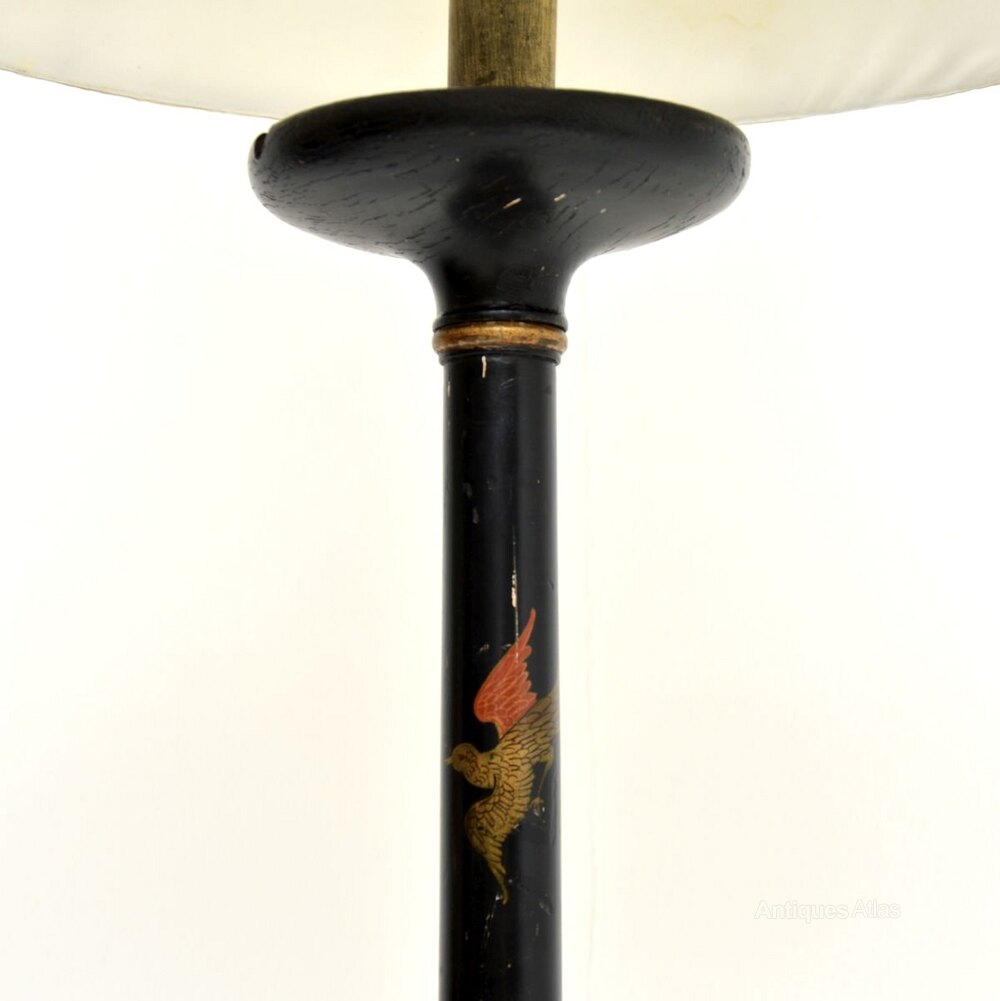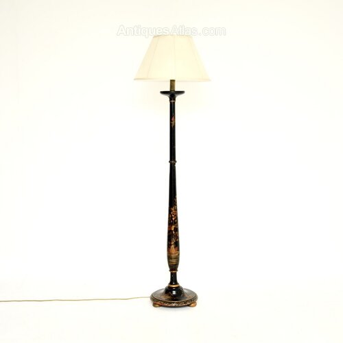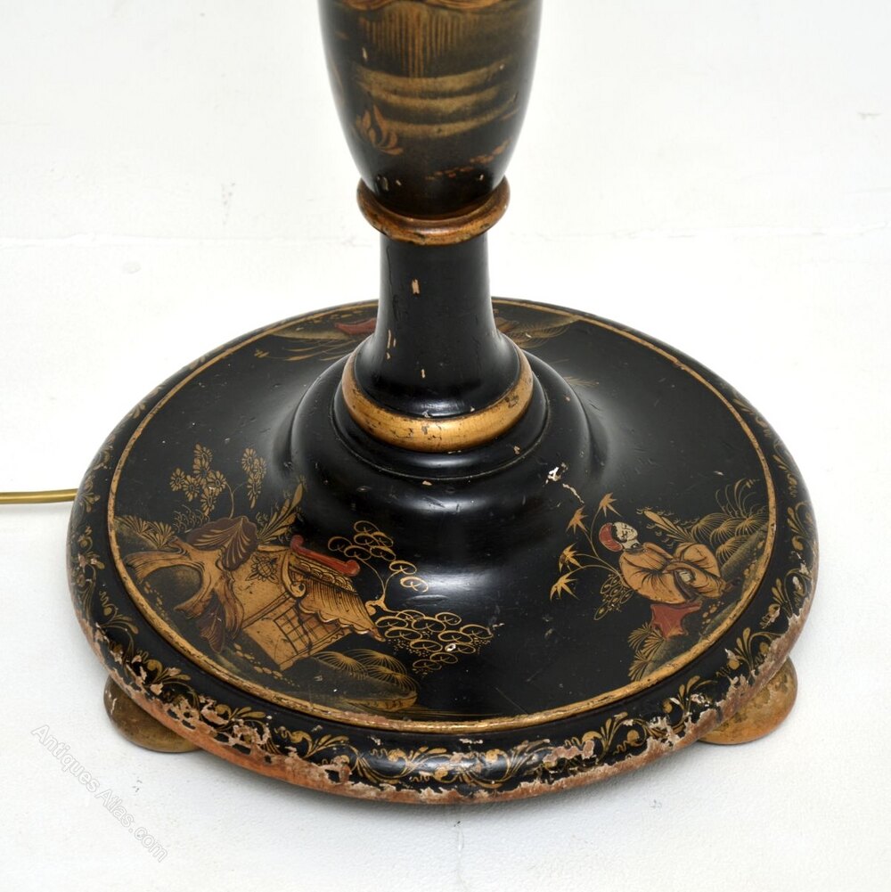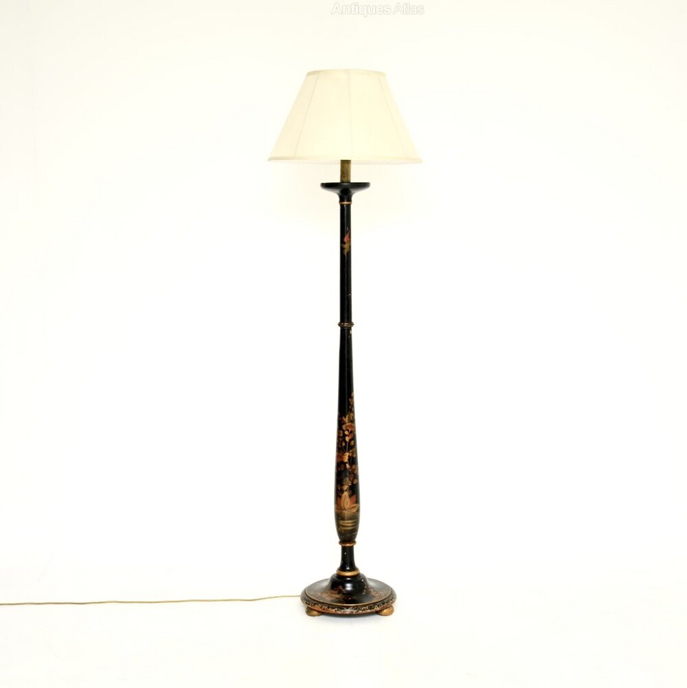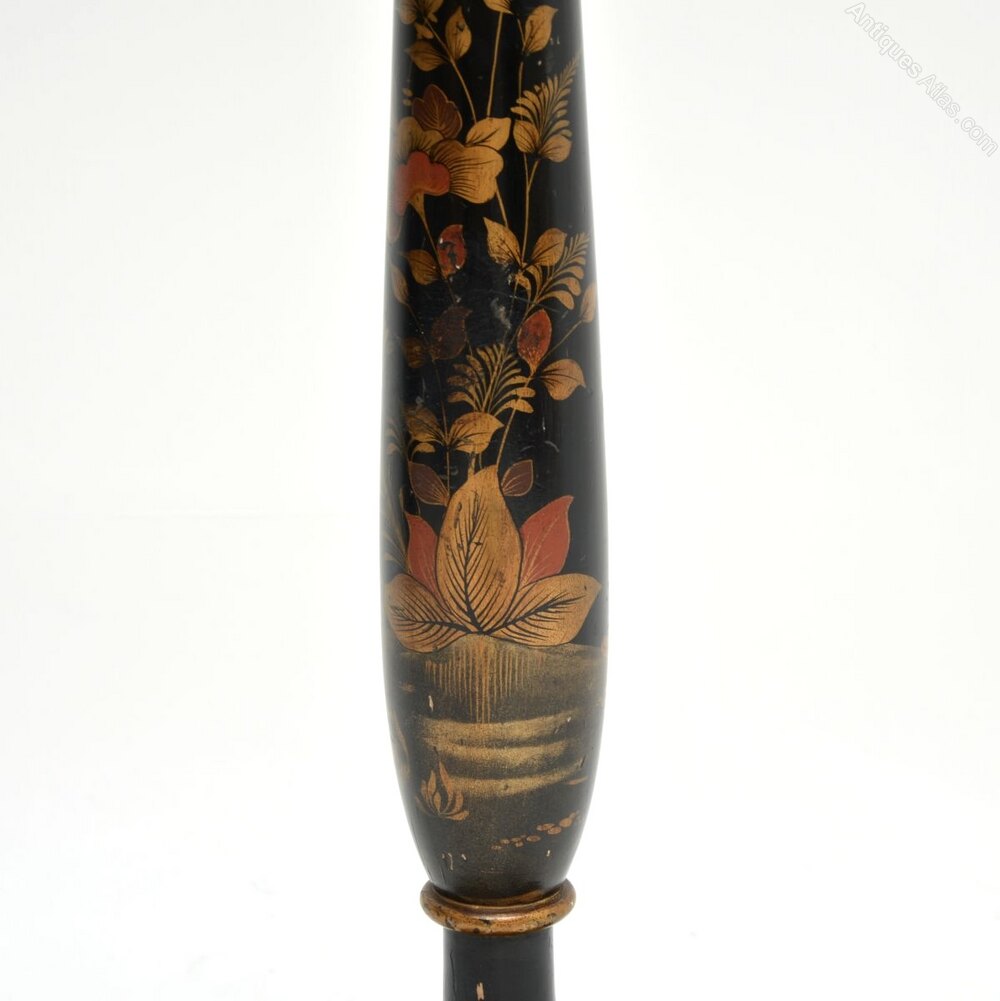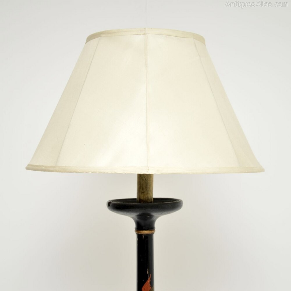 A stunning antique lacquered chinoiserie floor lamp, made in England and dating from the 1920’s.