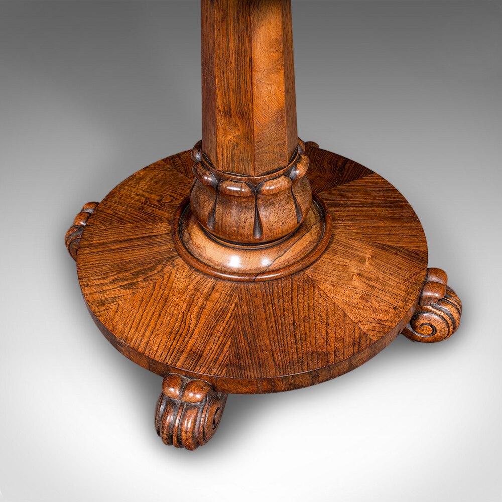 This is a charming antique ladies work table. An English, rosewood sewing or occasional games table dating to the William IV period, circa 1835. Of elegant form and fine craftsmanship, this versatile piece combines beauty and function, ideal for the refined drawing room, sewing corner, or study.