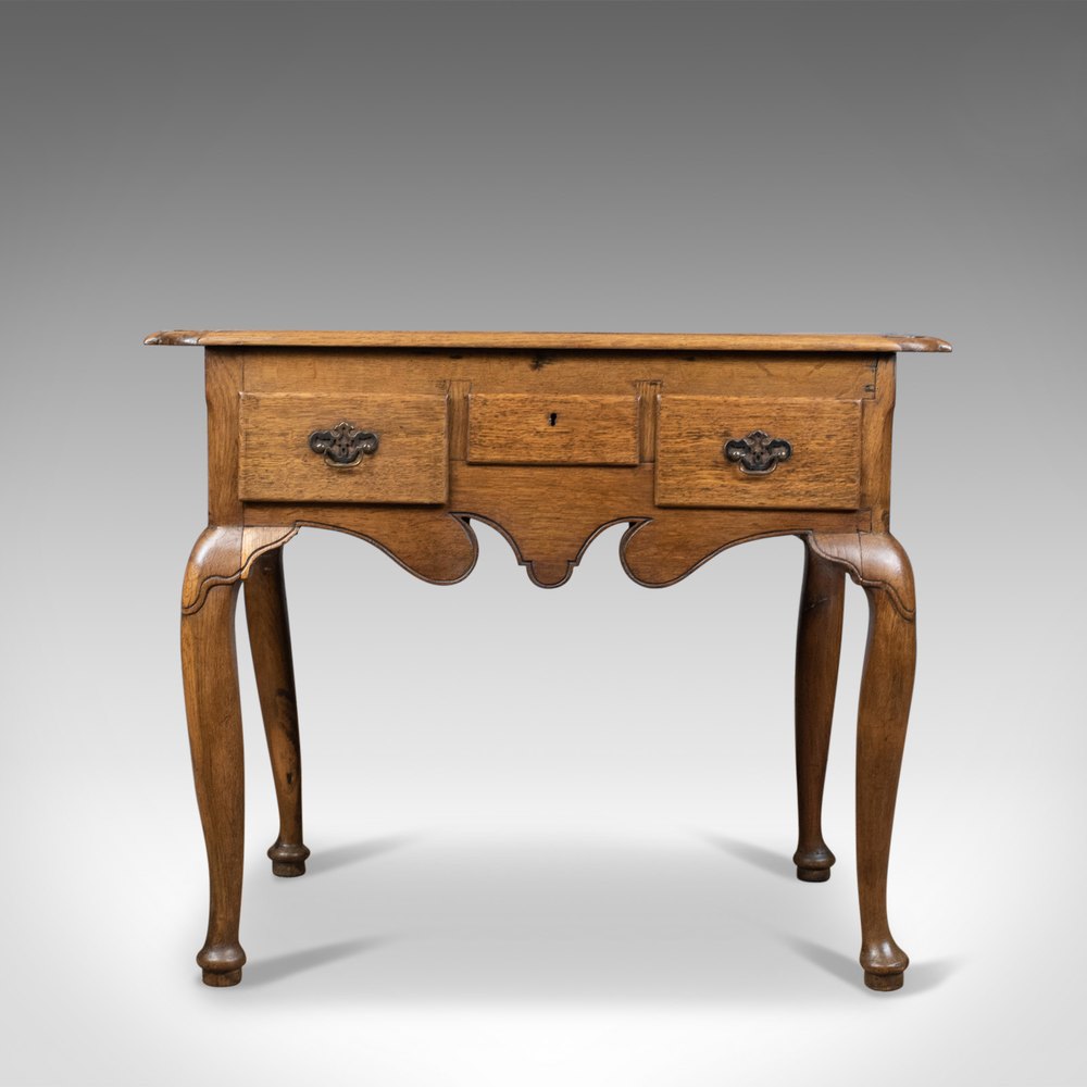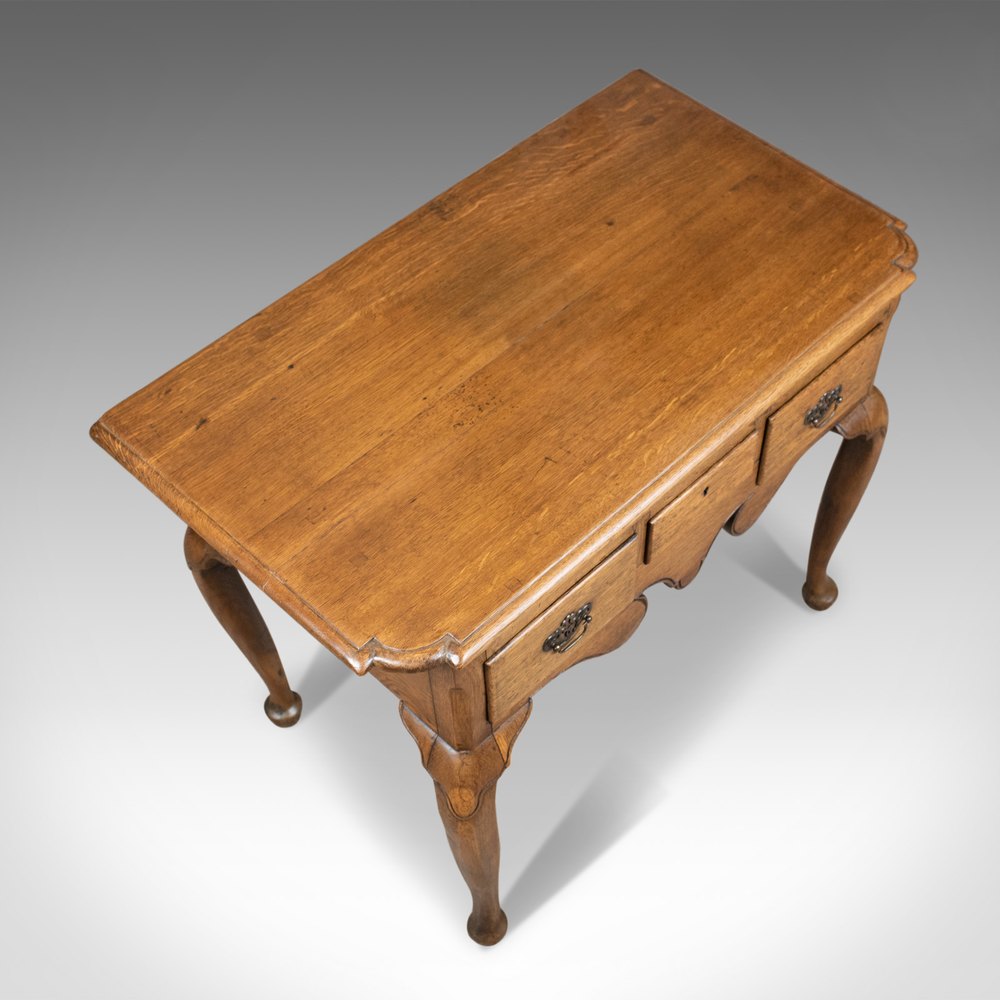 This is an antique lowboy, an English, late Victorian, oak table dating to c.1900.