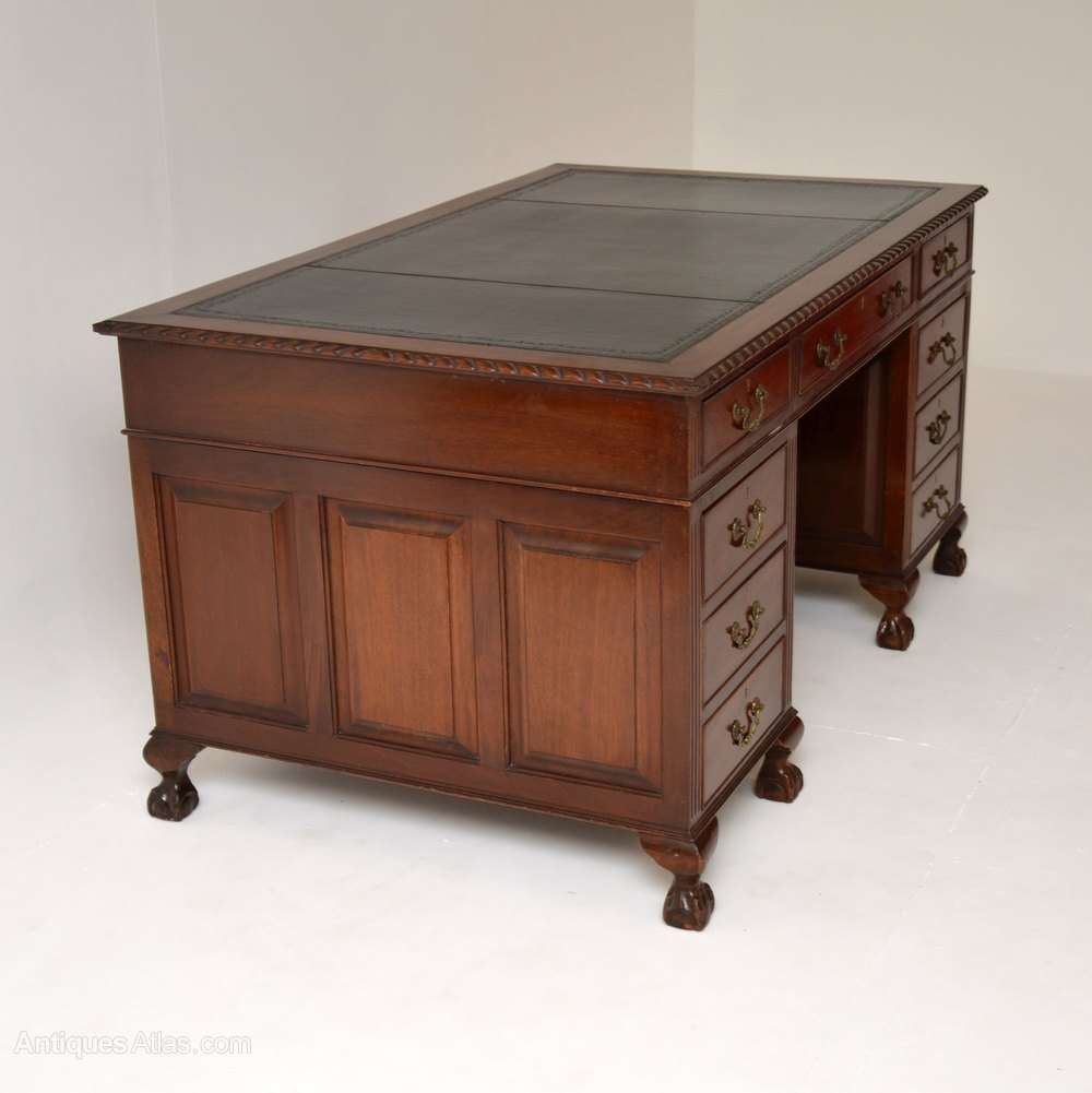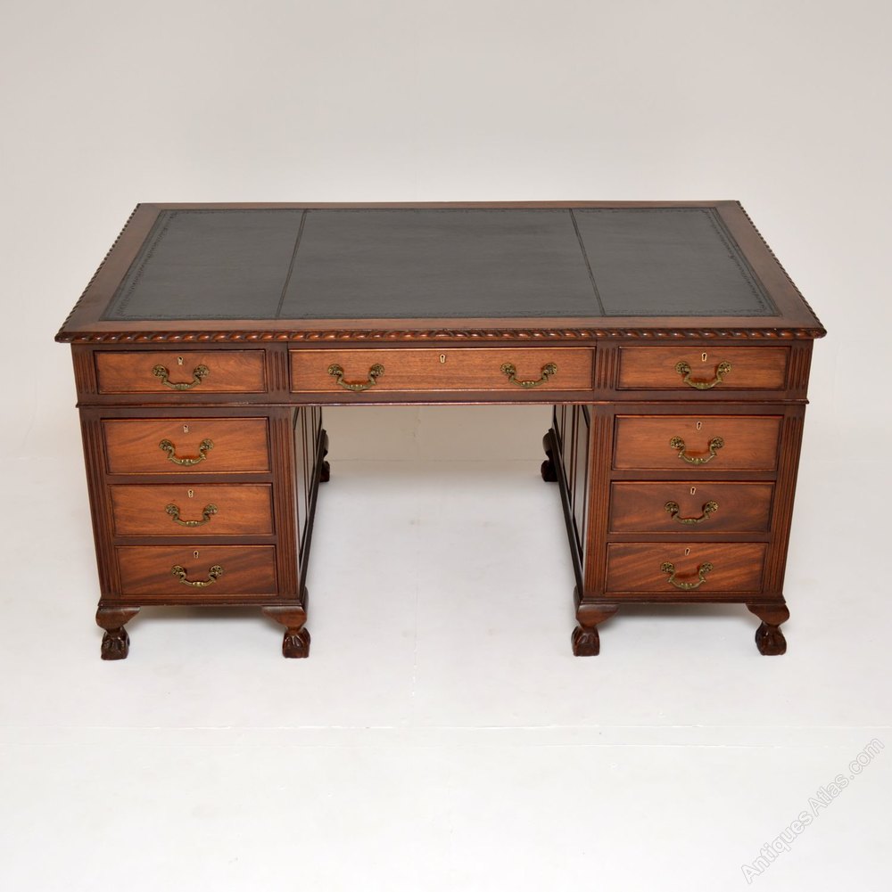 Antique Mahogany Chippendale Style Pedestal Desk