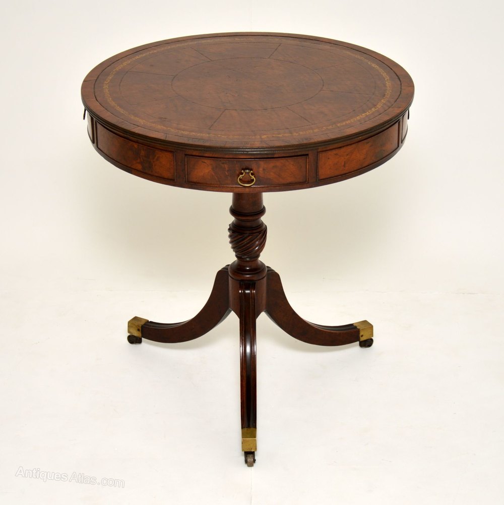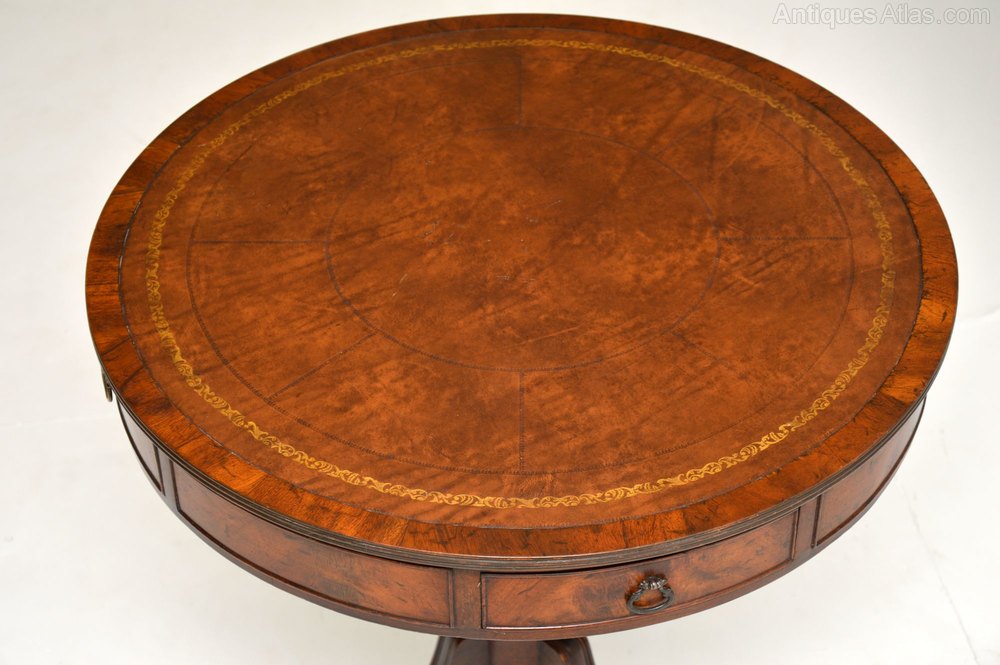 This antique mahogany revolving drum table has some very nice designs & is of fine quality.