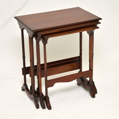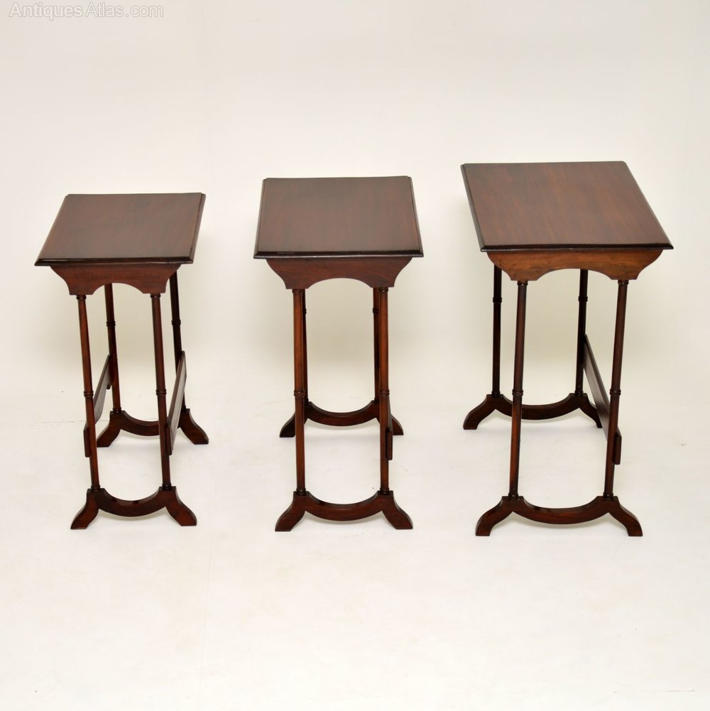 Antique Edwardian mahogany nest of three antique tables in excellent condition, dating from the 1900-1910 period. They are very stable & the legs have back & front supports between them.