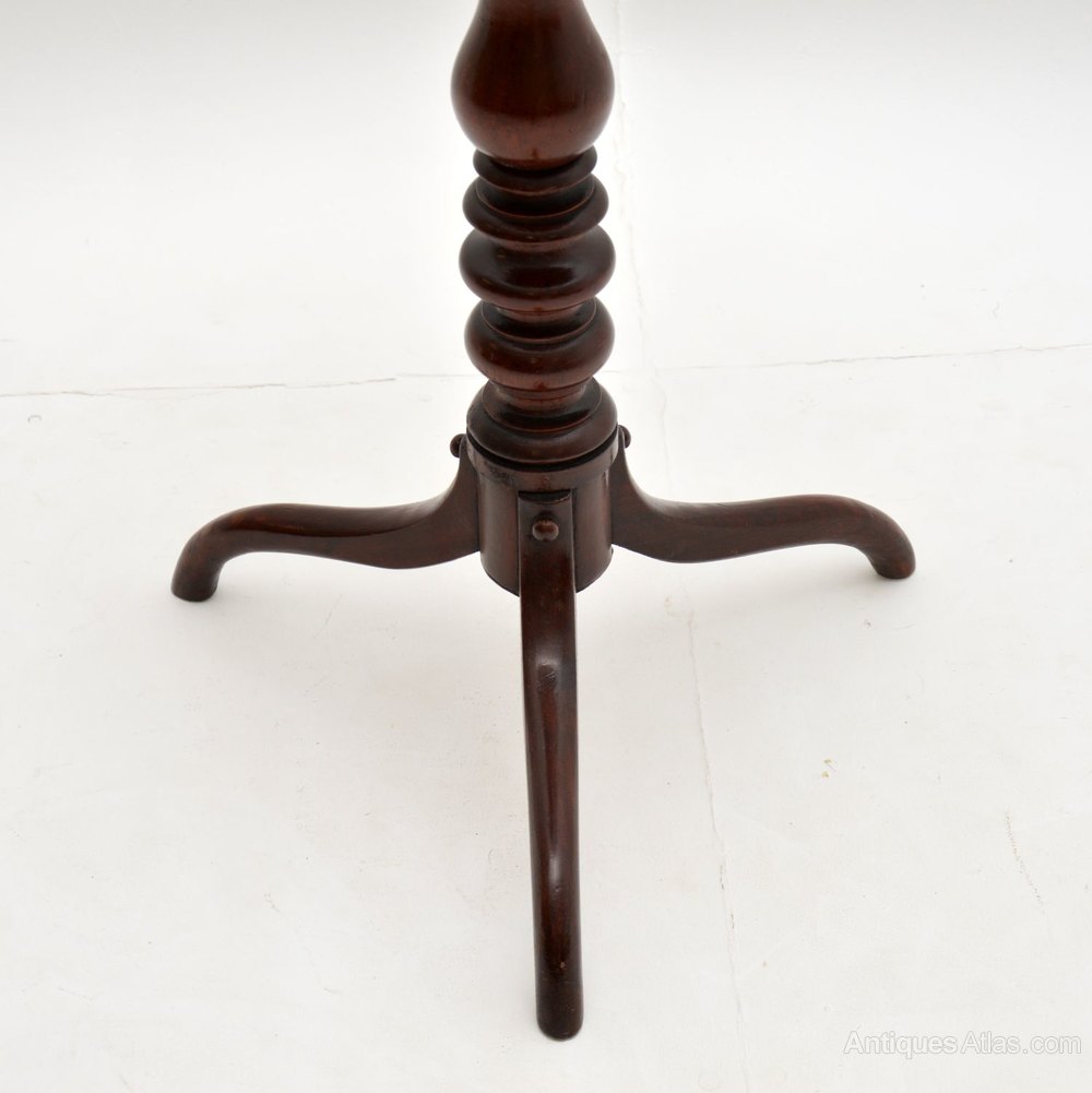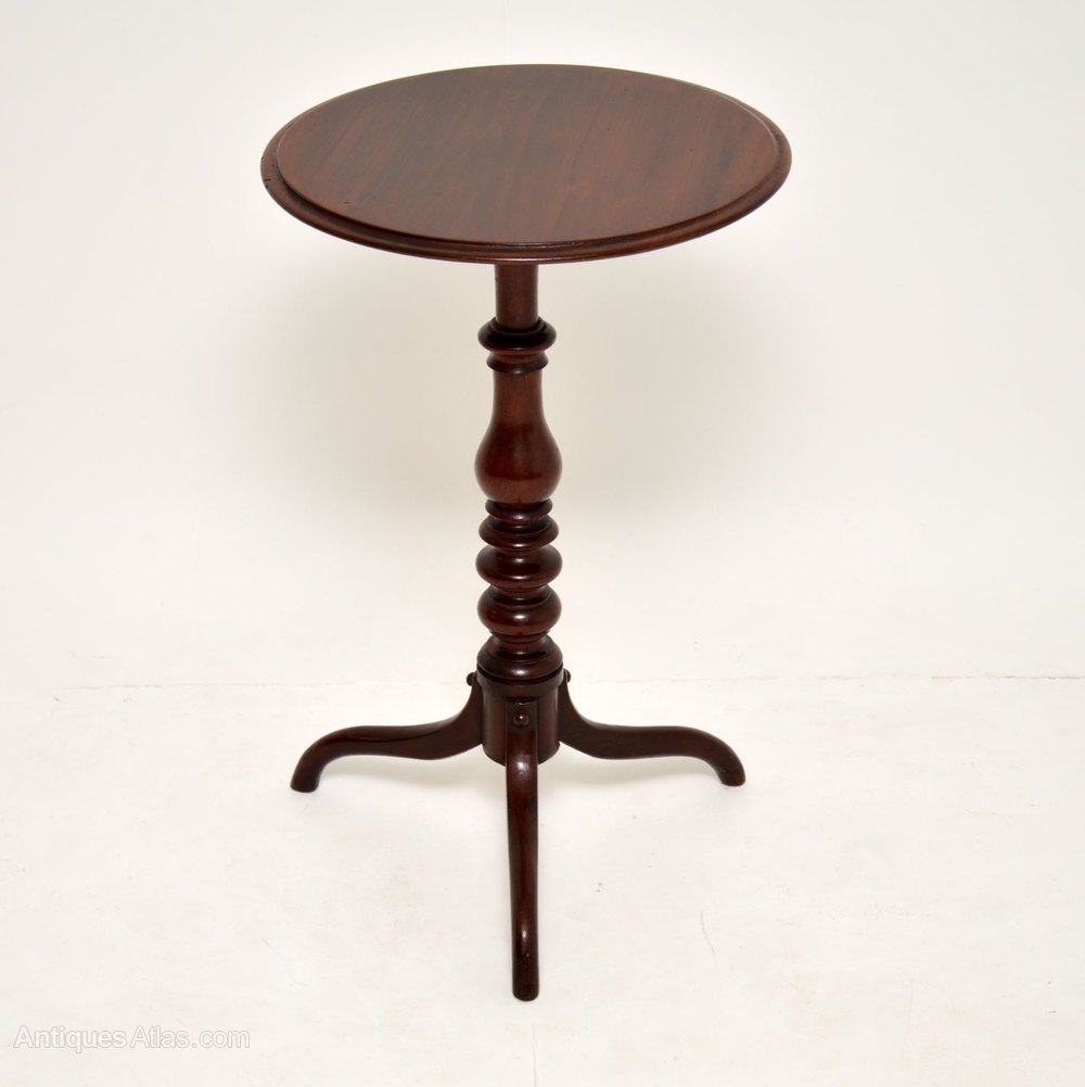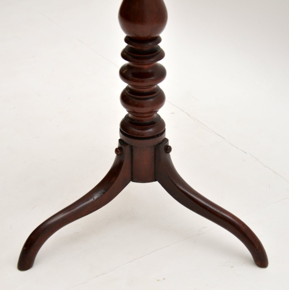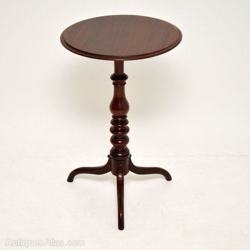 Antique mahogany occasional table with a circular top on a beautifully turned pedestal sitting on tripod legs.