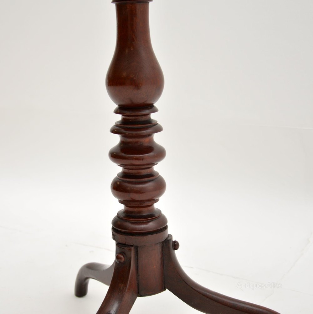 It’s in excellent original condition & I would date it to around the 1820-30’s period. The turned pedestal is particularly nice & the legs are very elegant too.