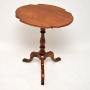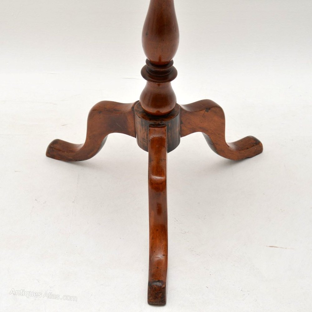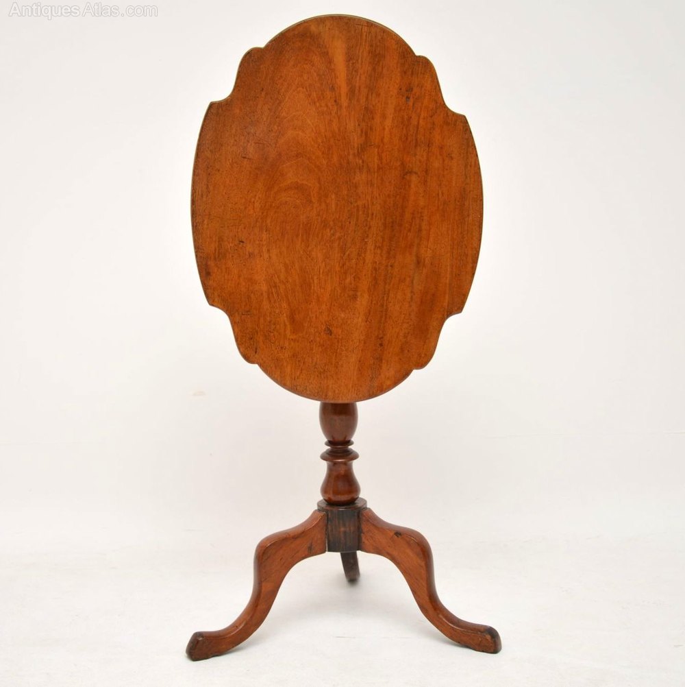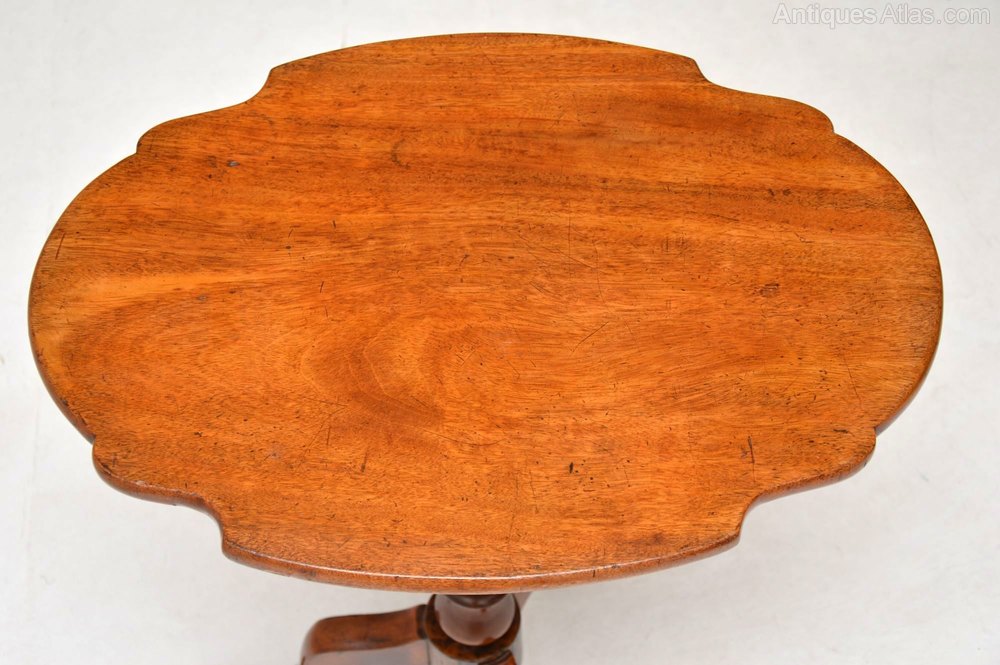 This antique solid mahogany tilt top table has a lovely colour & is full of character. It has a shaped top which can be tilted up & sits on a turned column with tripod legs. I would date this table to around the 1850’s & it’s in good original condition.